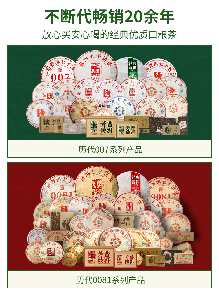 澜沧古茶经典普洱007生茶/0081熟茶品鉴口粮茶传承16g*6盒