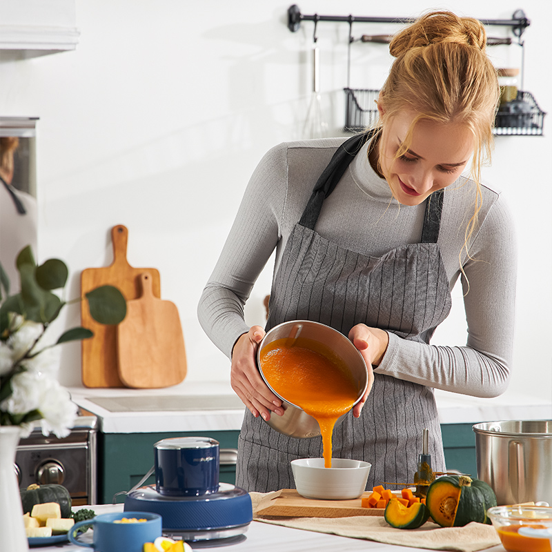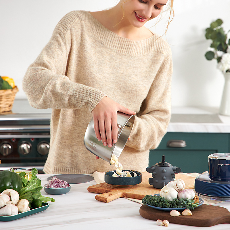 摩飞的产品让人印象深刻的有两个点——多功能和便携。料理锅、气泡原汁机、刀具消毒器是多功能产品的代表,榨汁杯、套娃辅食机则是便携产品的代表。这次每满生活推出多款多功能的产品,比如榨汁杯、多功能锅、套娃辅食机、电水壶、刀具消毒器、电饼铛等。