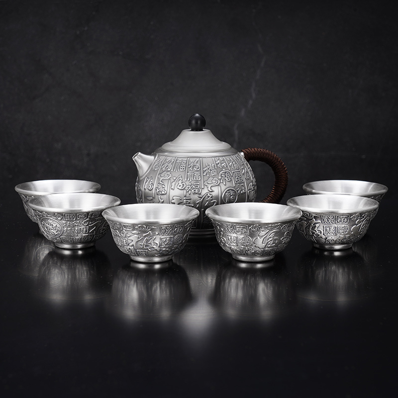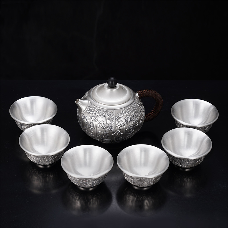 子佩集S999银【升祺骈福】套装【BX002076401】纯银小茶壶茶杯摆件套装2406