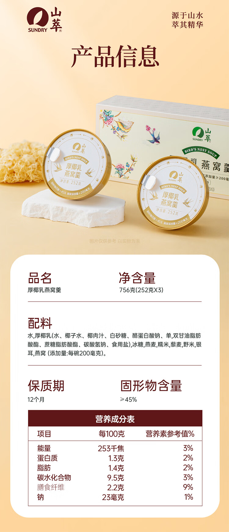 中粮山萃厚椰乳燕窝羹756g(252g*3)