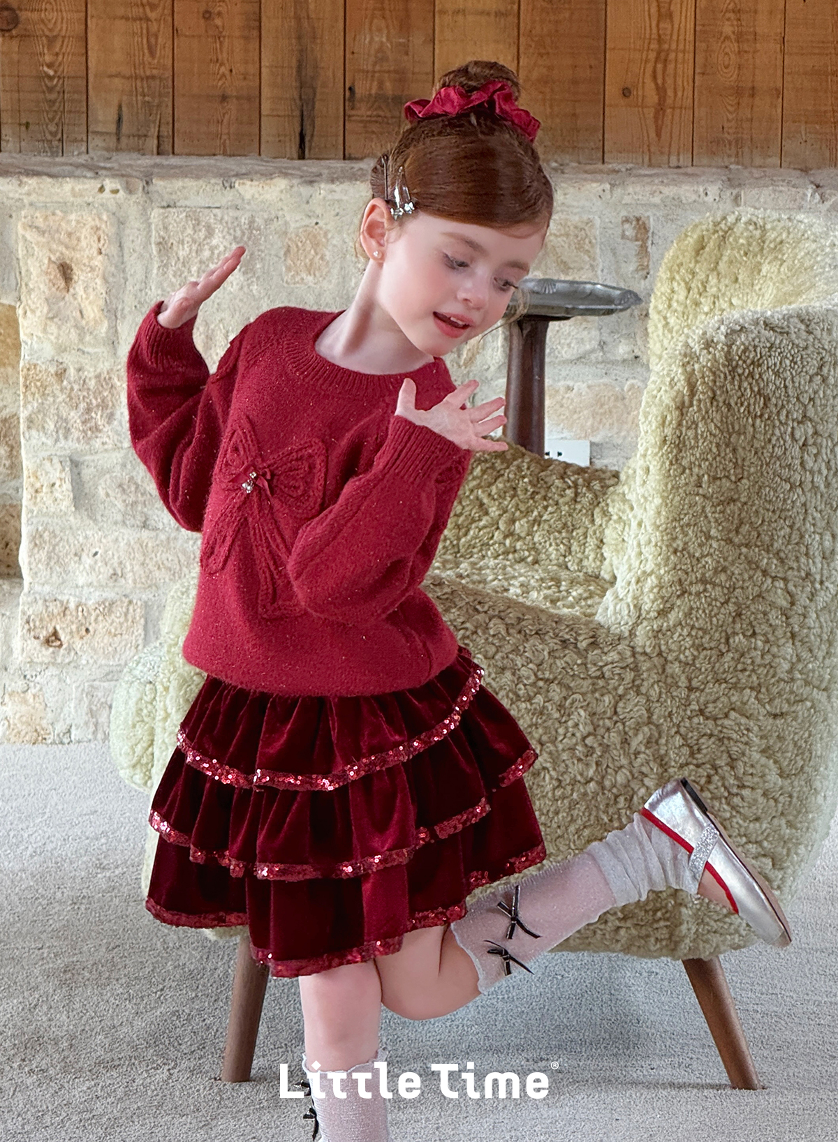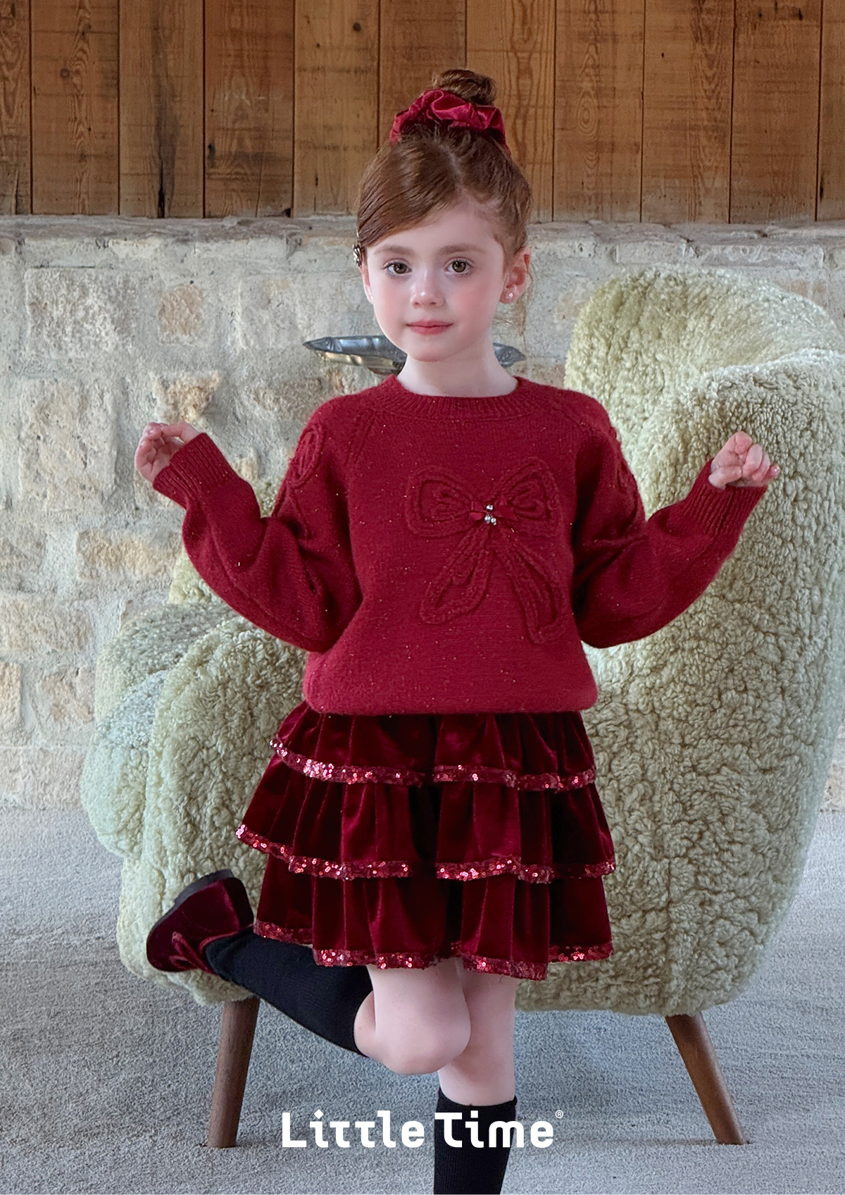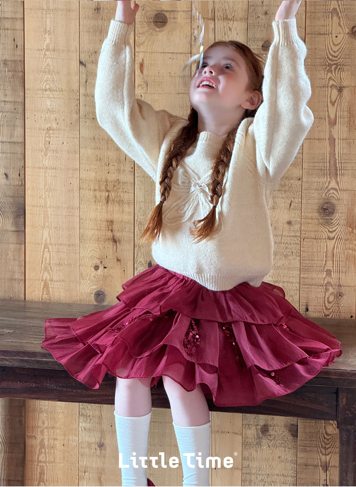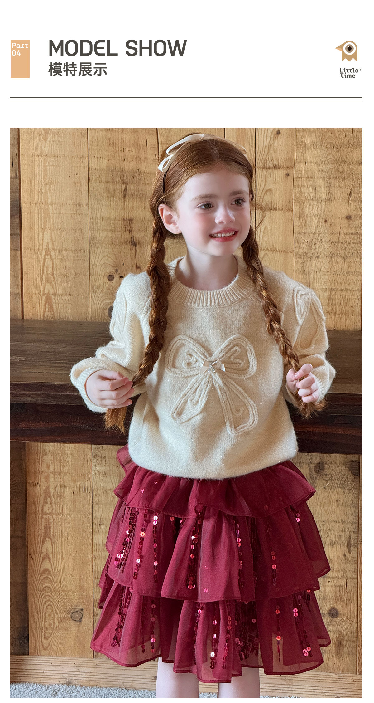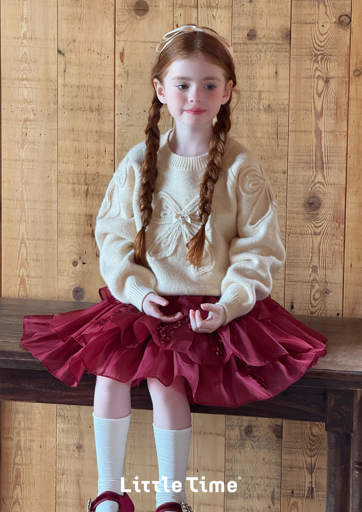 littletime女童毛衣2025秋冬新款儿童韩版蝴蝶结针织衫上衣