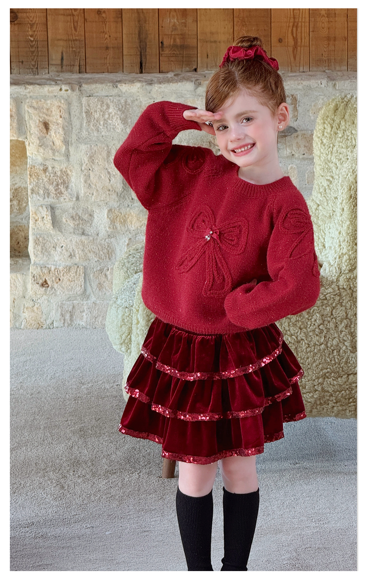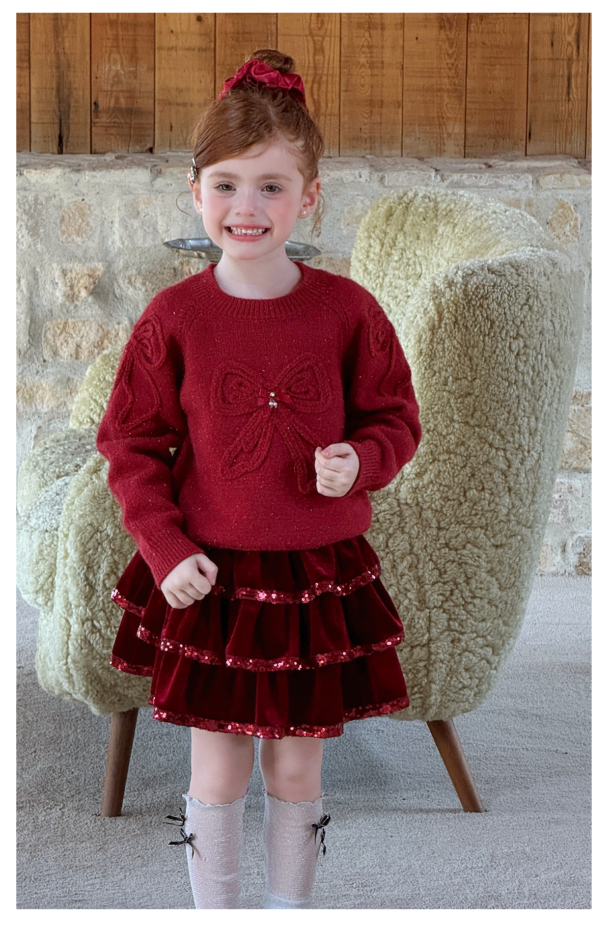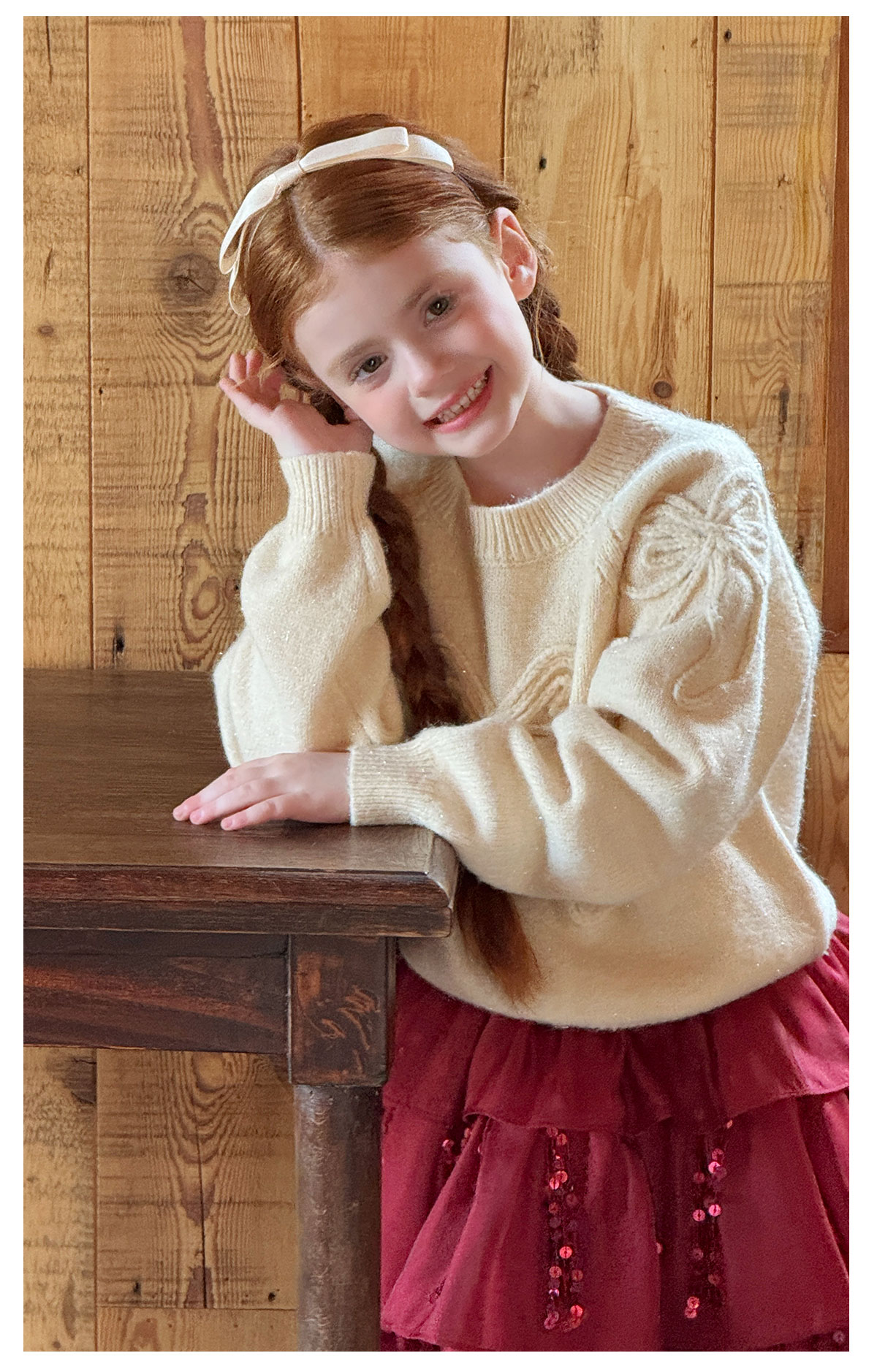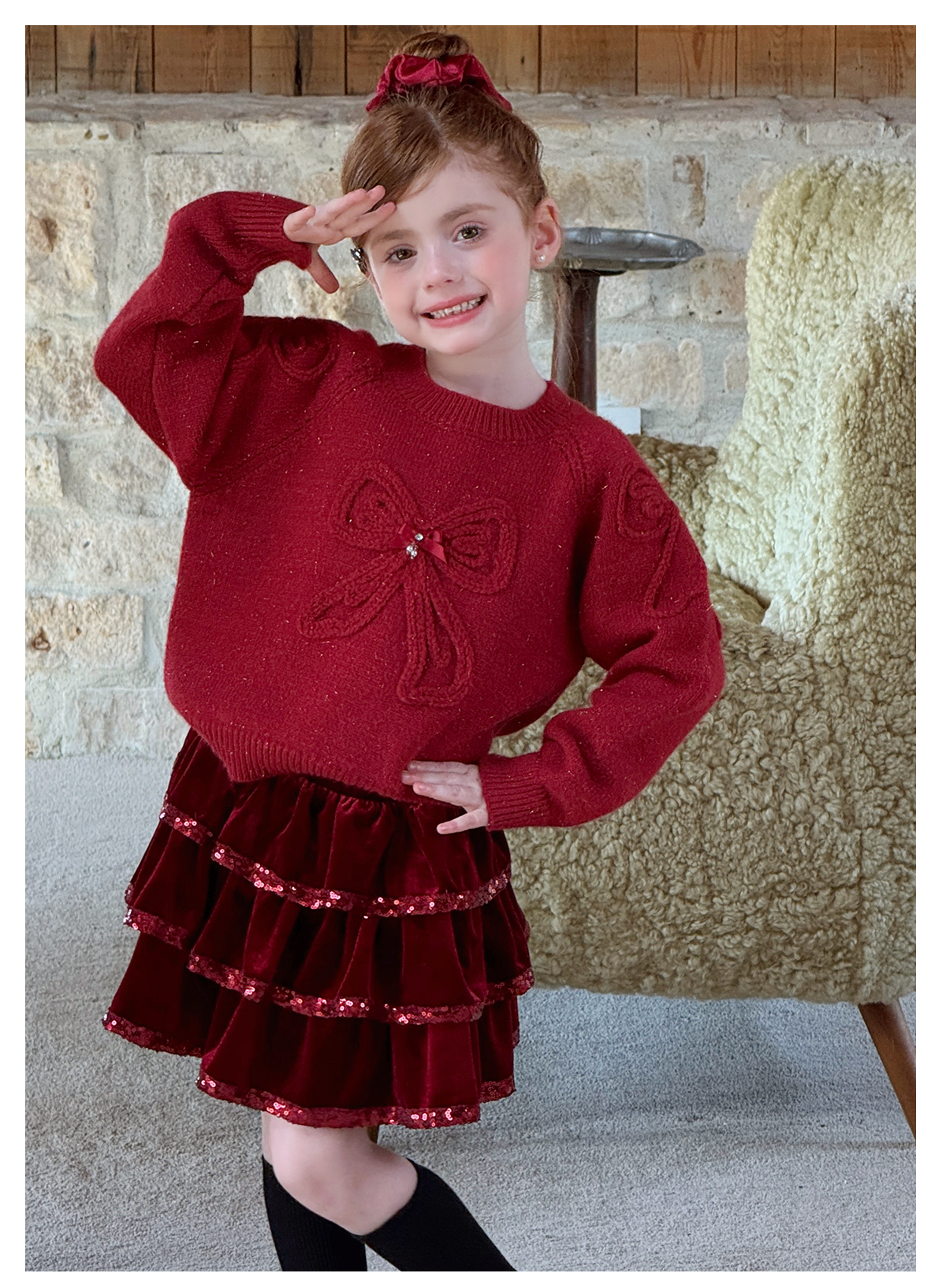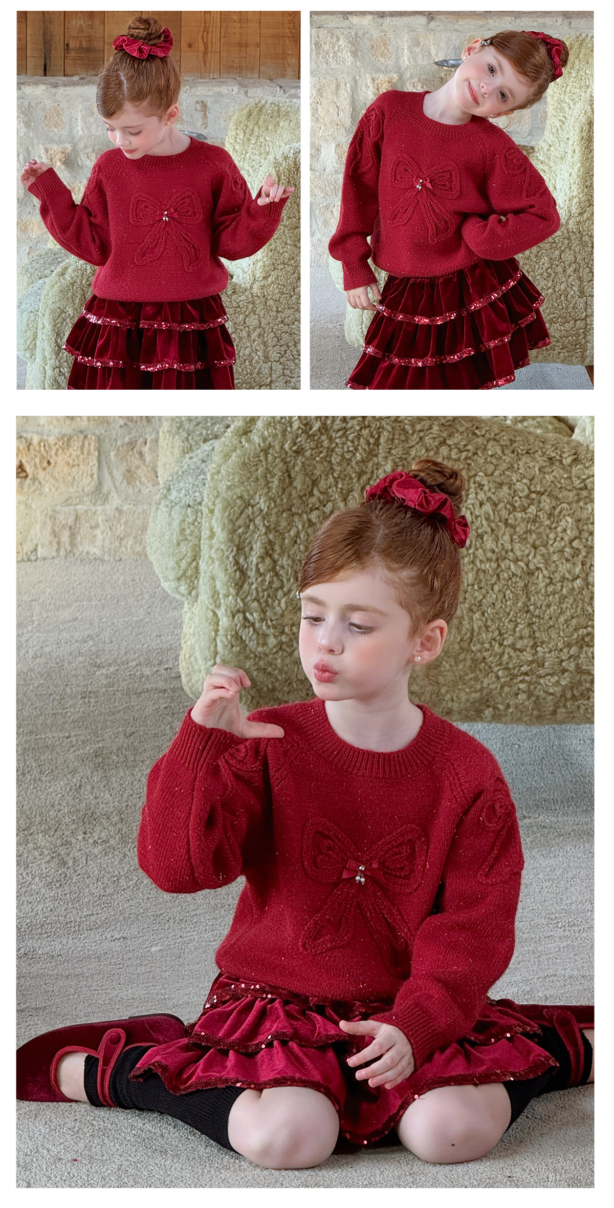 littletime女童毛衣2025秋冬新款儿童韩版蝴蝶结针织衫上衣