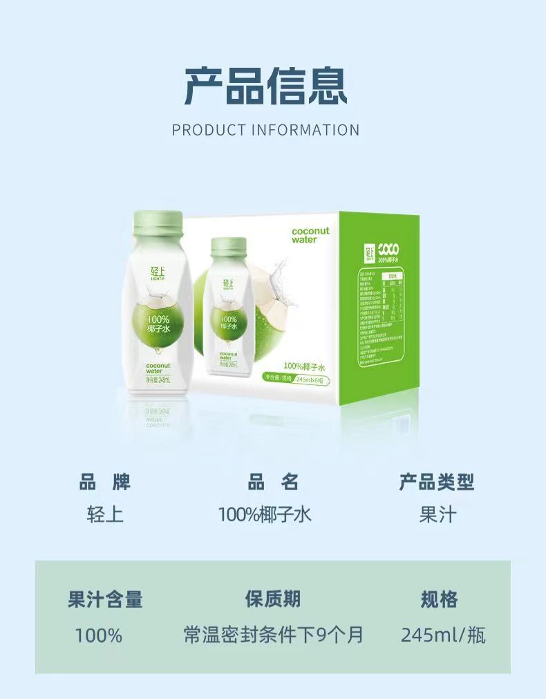 轻上100%椰子水245ml*10瓶整箱