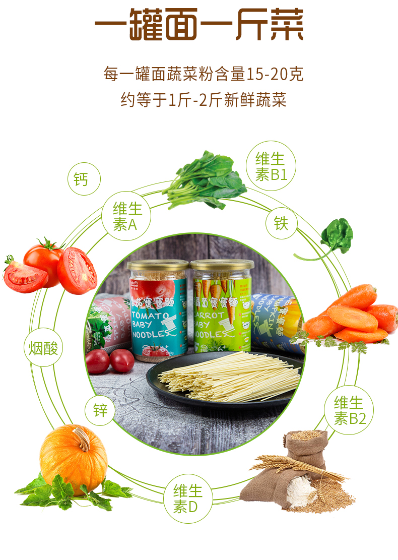 宝贝顾问中国台湾进口宝宝面条辅食婴幼儿营养儿童蔬菜面无添加盐/罐装200g