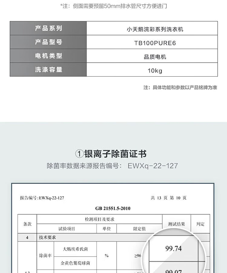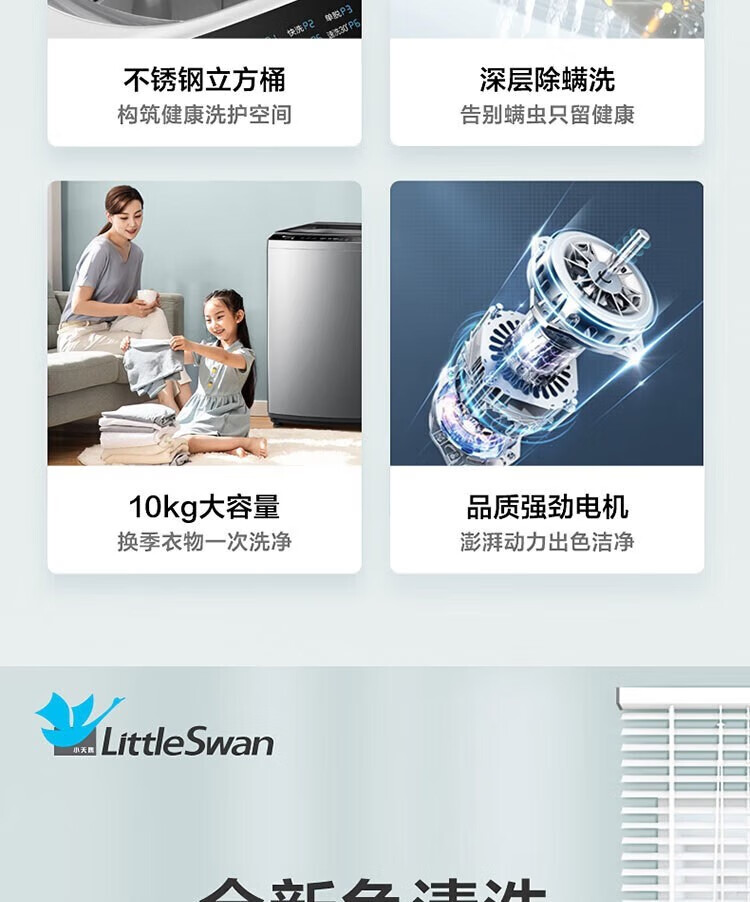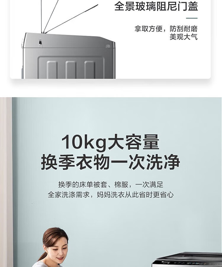 【小天鹅】洗衣机_波轮全自动家用 10公斤大容量 银离子除菌 玻璃阻尼门盖_TB100PURE6【佛山】