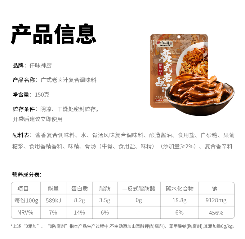 【限时大促】仟味神厨正宗广式老卤汁150g 卤味浓郁鲜香 骨汤熬制卤肉卤菜卤啥都好吃 家用份量更多加水即卤