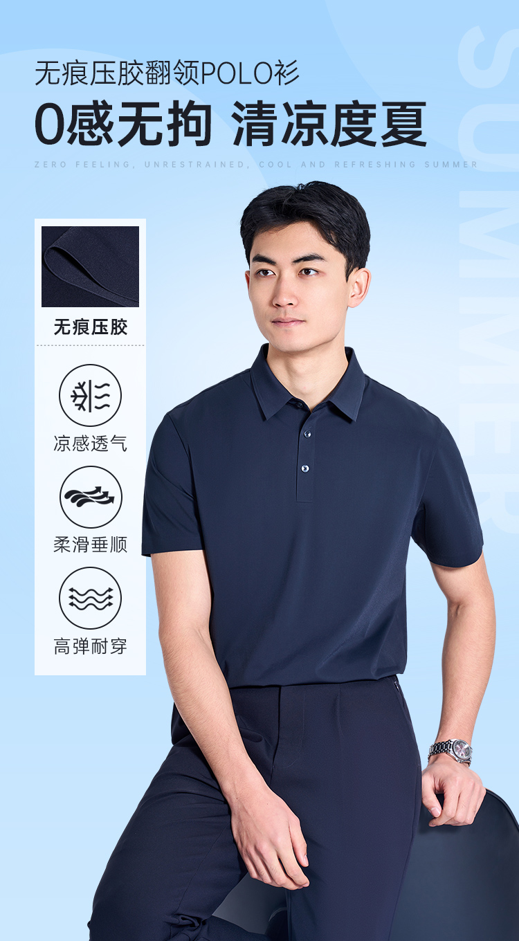 【二代无痕压胶翻领polo衫】凉感透气翻领短袖 冰丝高弹半袖上衣L005