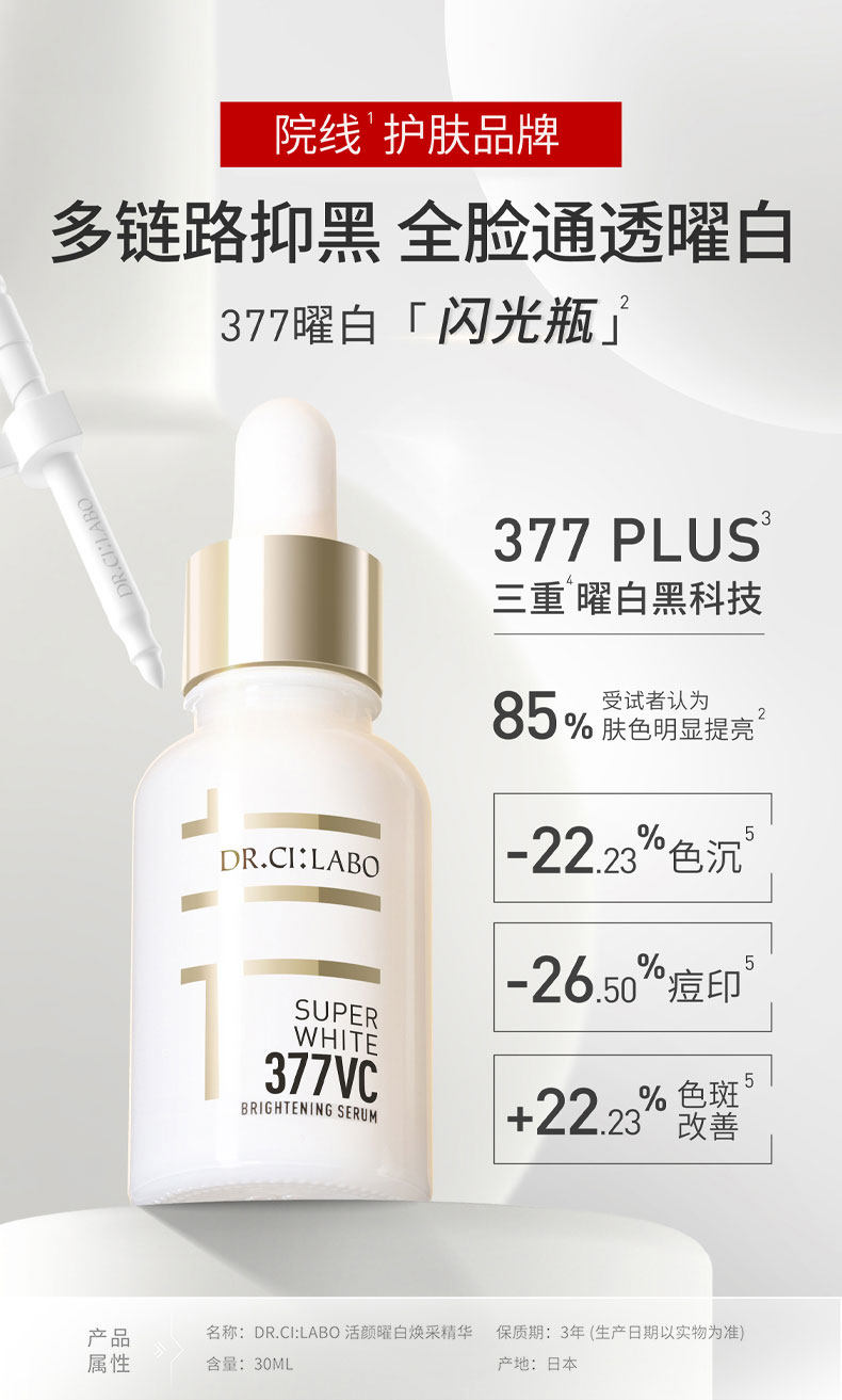DR.CI:LABO活颜曜白焕采精华 城野医生闪光瓶377烟酰胺液态精华提亮肤色淡斑淡化痘印精华30ml