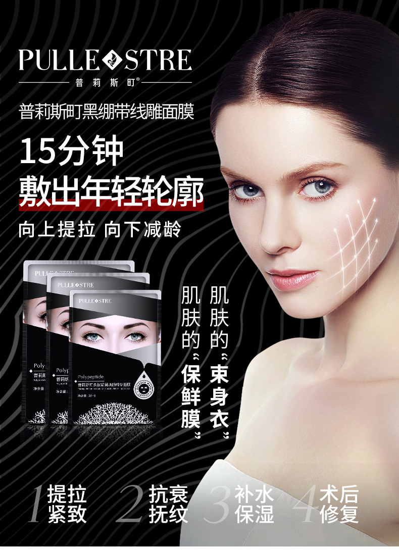 普莉斯町黑绷带线雕面膜 补水保湿