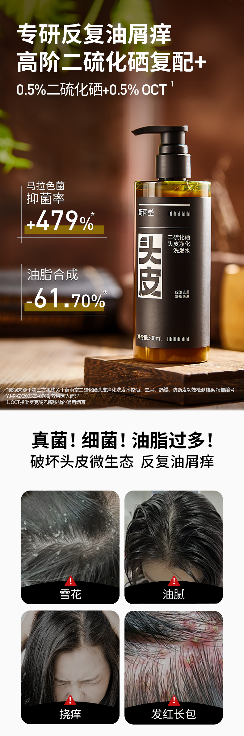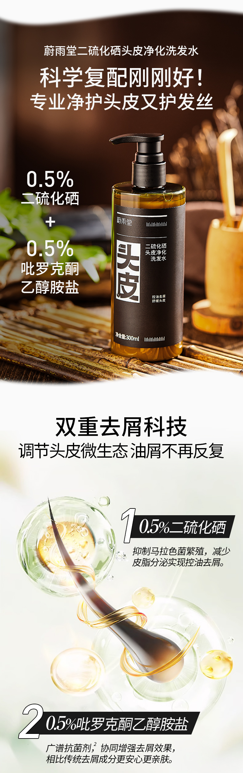 蔚雨堂二硫化硒头皮净化洗发水300ml 控油去屑防断发 抑制马拉色菌 拒绝油屑痒
