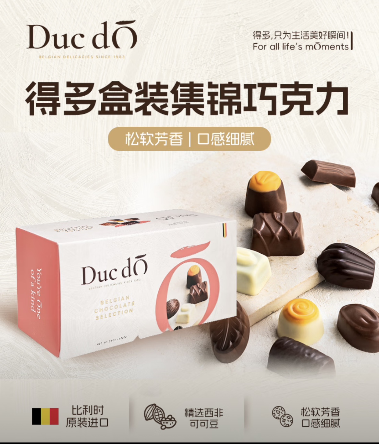 【新品上架】得多盒装集锦巧克力制品250g 松软芳香 口感细腻 045573