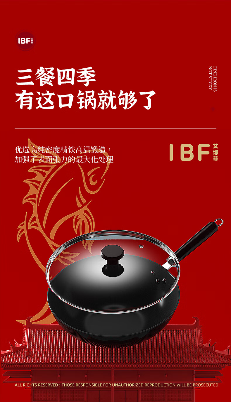 【IBF艾博菲】B7F鲤跃龙门真不绣炒锅32cm