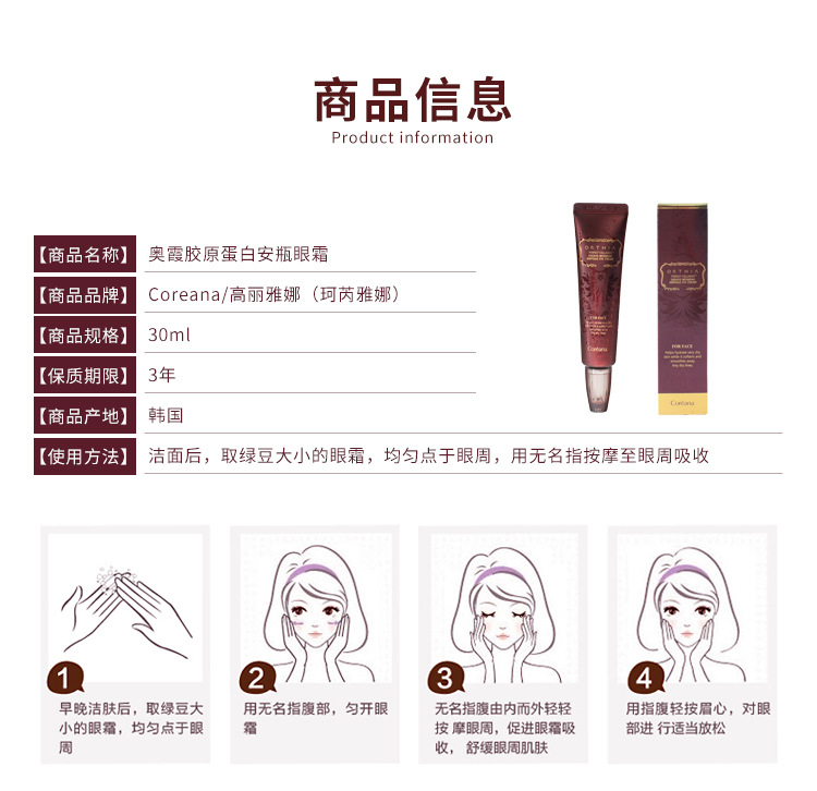【YZ】韩国Coreana高丽雅娜肉毒杆菌精华眼霜去细纹提拉紧致祛黑眼圈袋