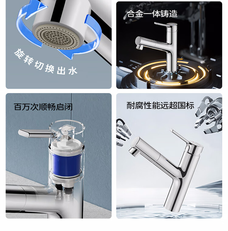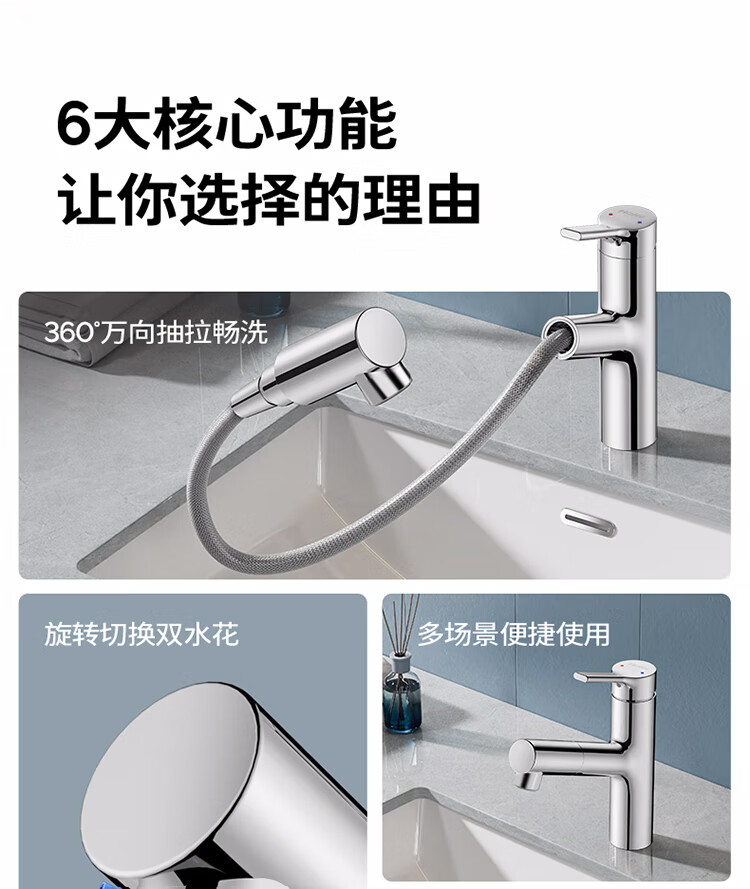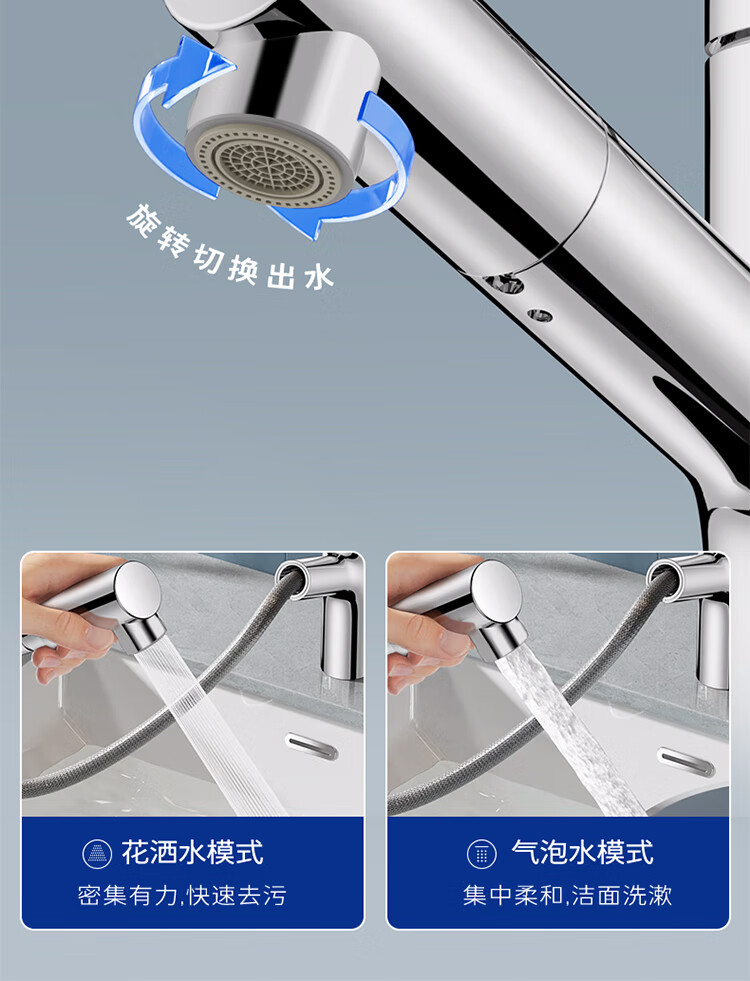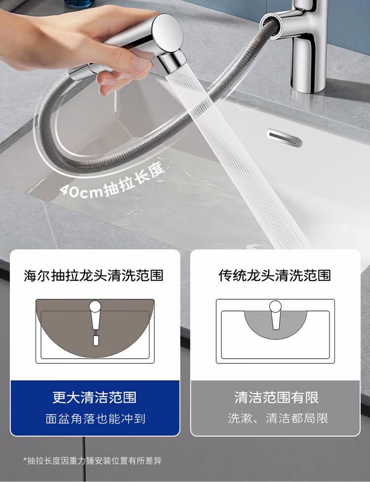 海尔(Haier)面盆水龙头冷热抽拉式厨房浴室自动复位两档可调出水L6F-S亮银色/L6F-G枪灰