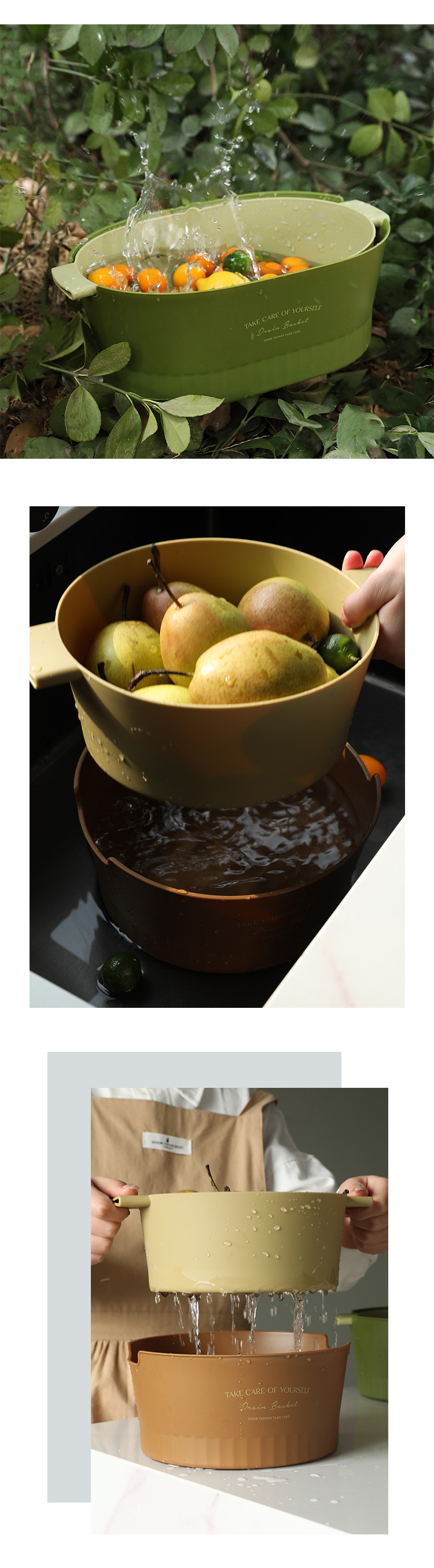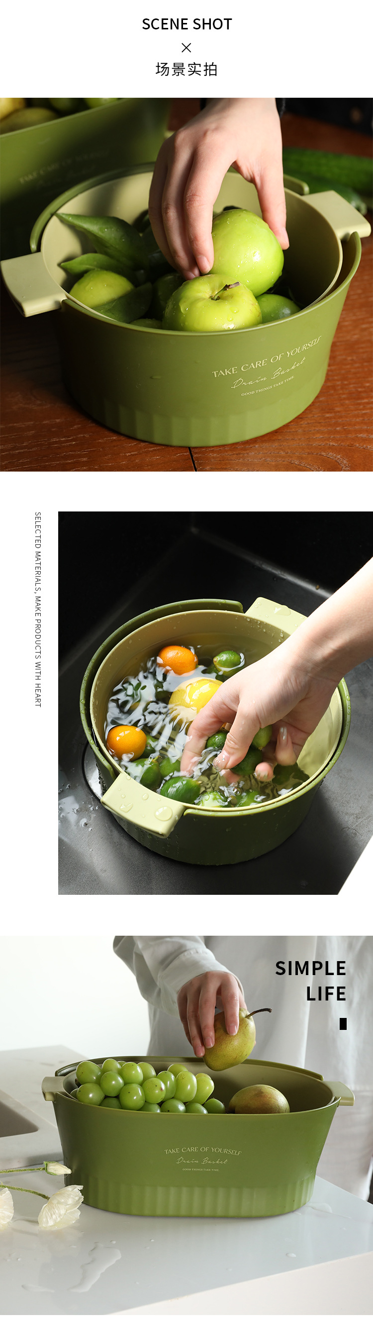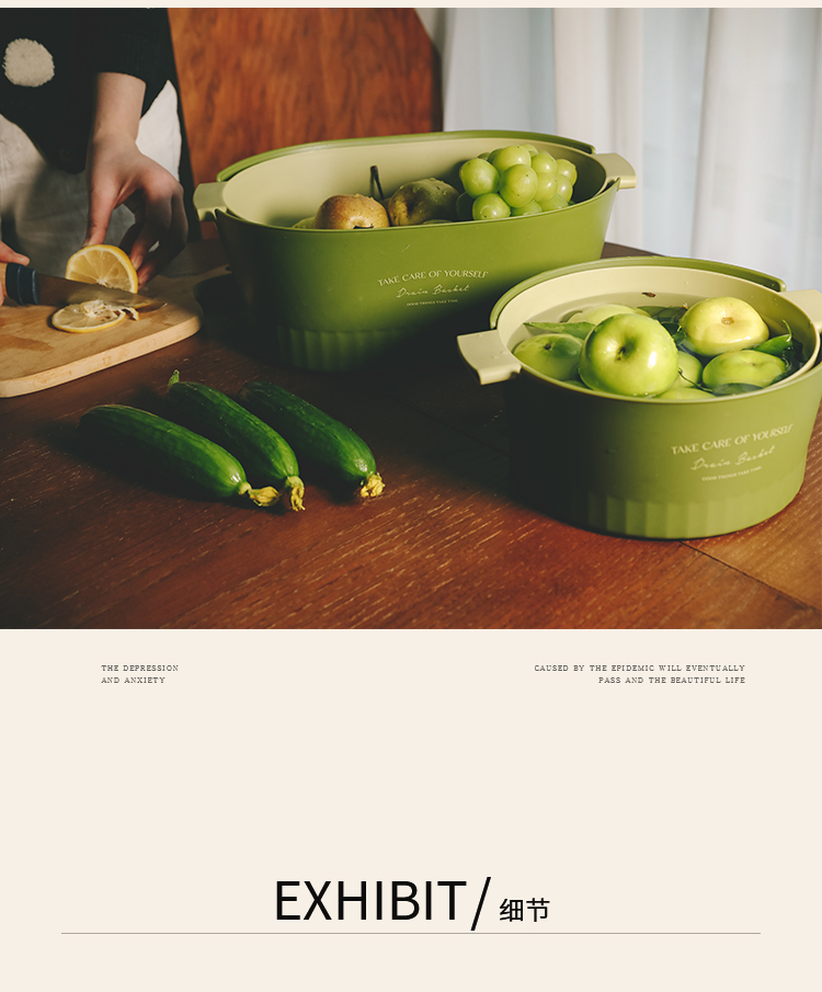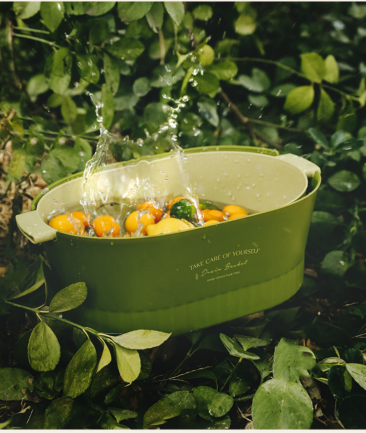 1.超级好看的沥水篮,大篮子比一般的篮子要更长,茄子黄瓜条状物更好的沉浸放入洗净,容量也超级大,洗好直接端到桌子上还可以当果盘,颜值非常OK