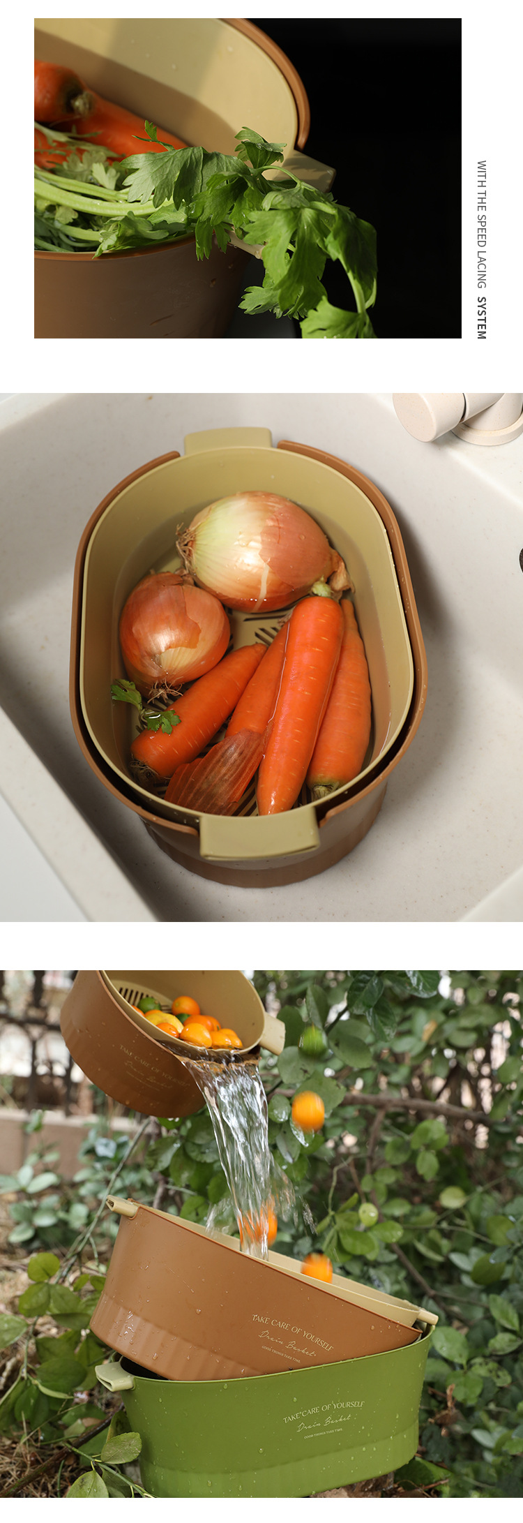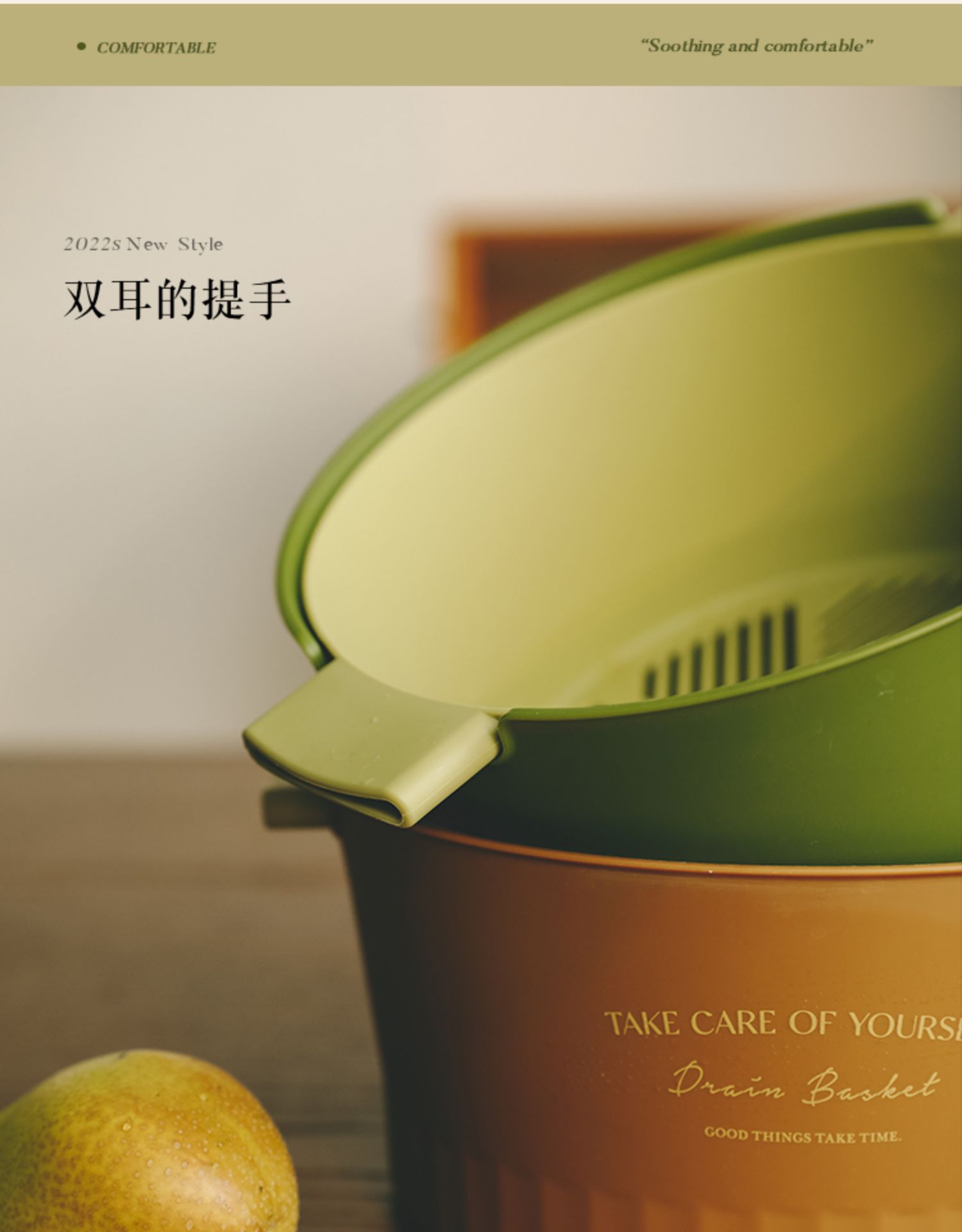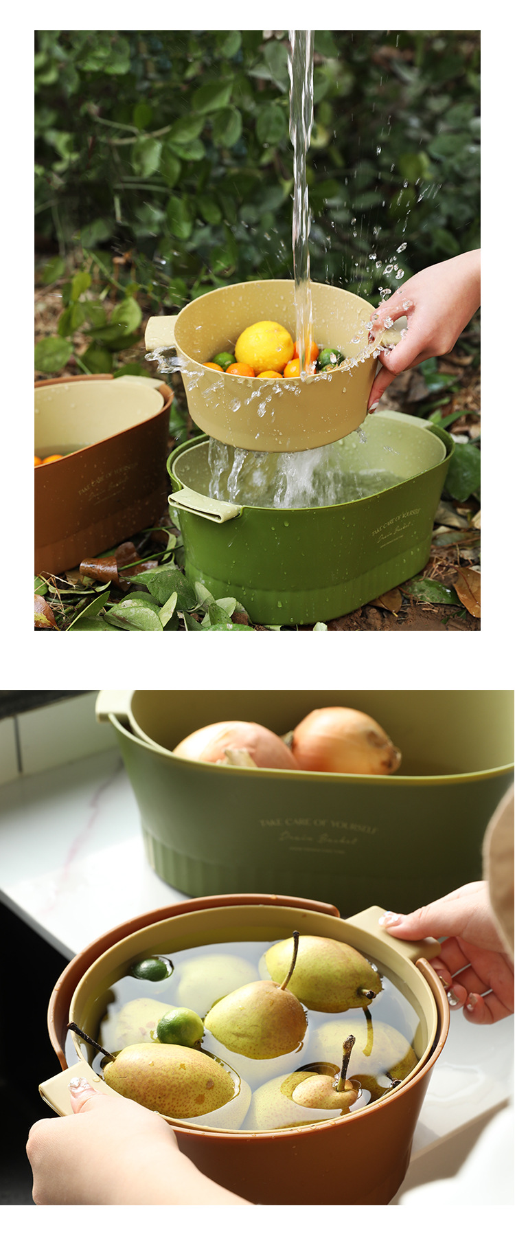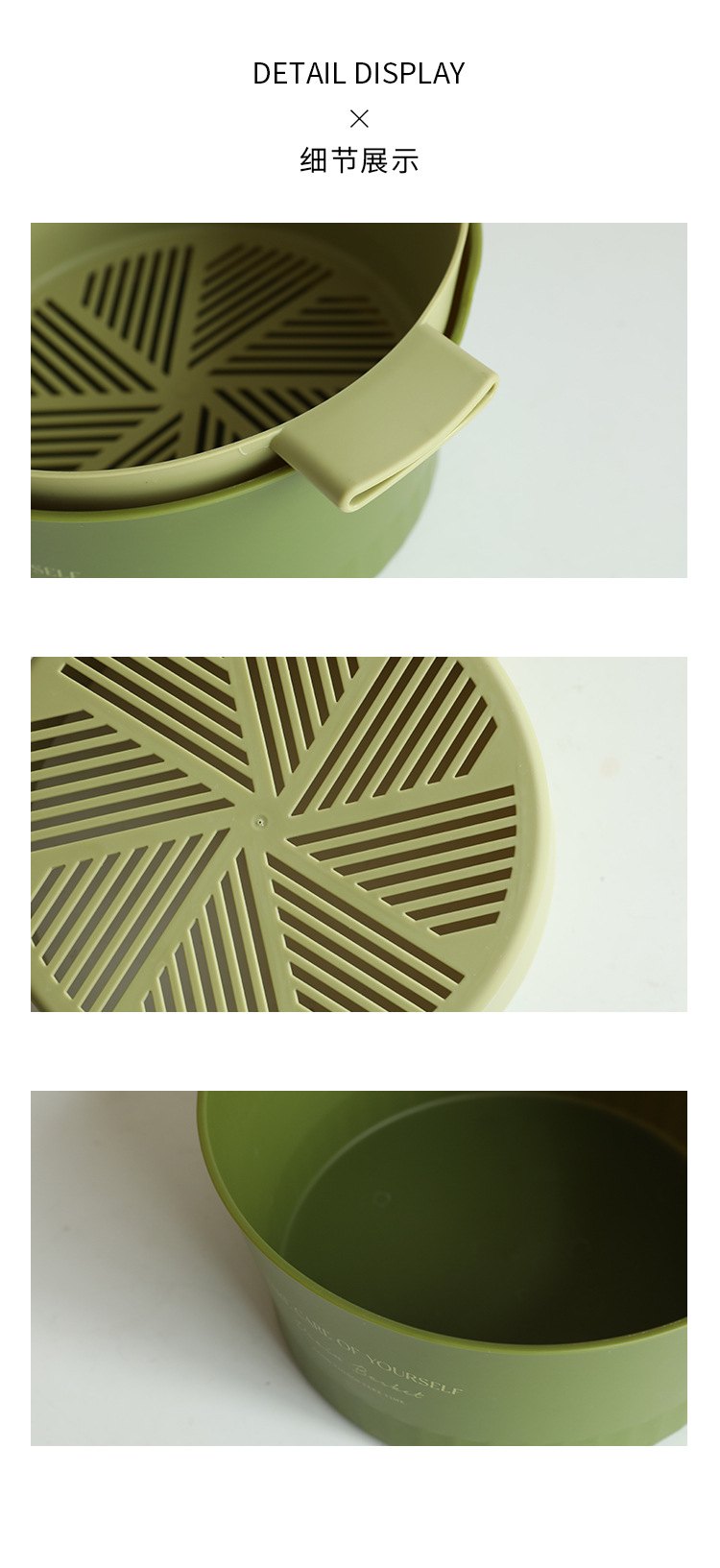 1.超级好看的沥水篮,大篮子比一般的篮子要更长,茄子黄瓜条状物更好的沉浸放入洗净,容量也超级大,洗好直接端到桌子上还可以当果盘,颜值非常OK