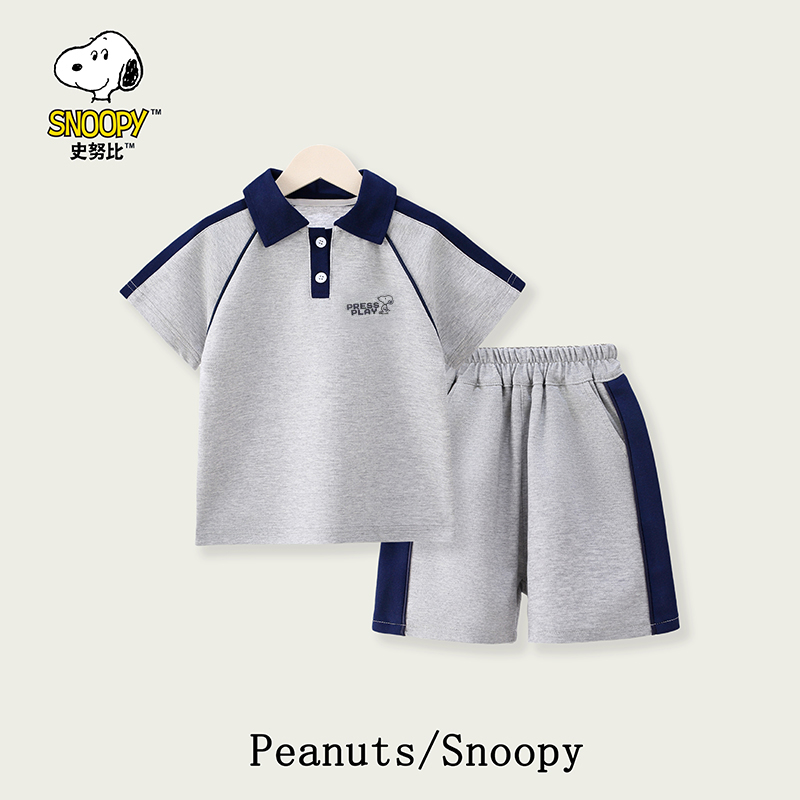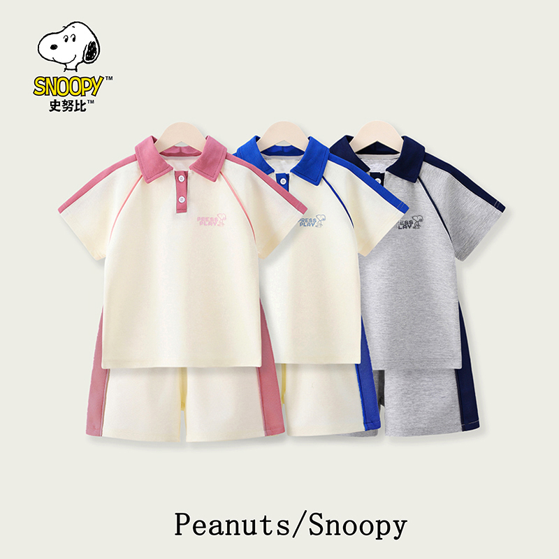 【清货中】史努比儿童夏季时尚休闲宽松运动翻领POLO衫短裤运动套装SZZD27