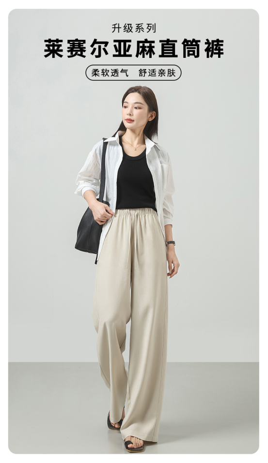 版型绝绝绝绝❗❗❗垂坠感又自带慵懒松弛感❗ 小个子也能穿大长腿效果! 面料是莱赛尔94.9%+亚麻5.1% 清爽透气!不闷汗!夏天可以当防晒裤! 相比全麻材质柔软舒服