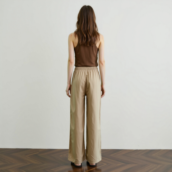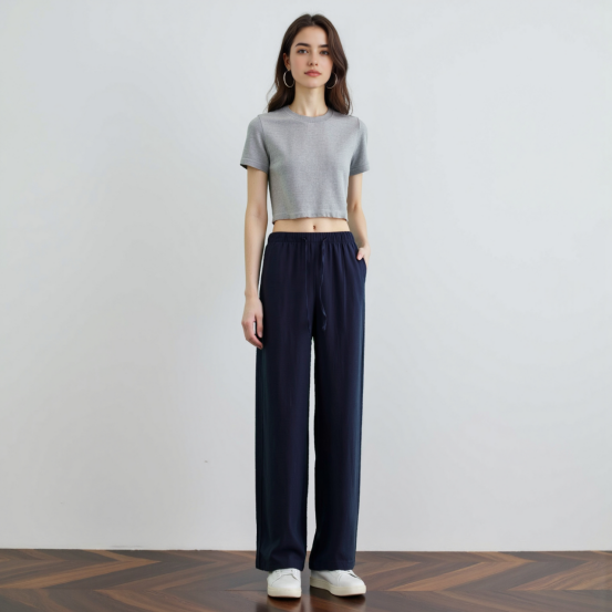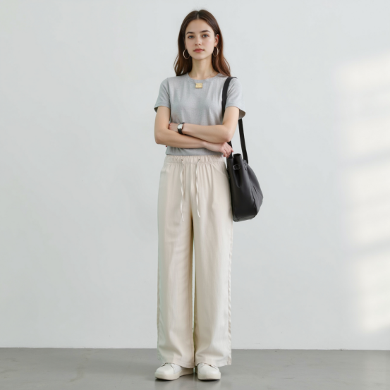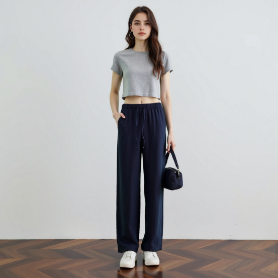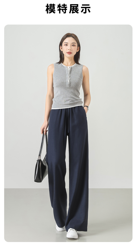 松紧腰+抽绳设计 增加了裤子的层次感和高级感,比普通直筒裤更有设计感, 随便搭个简单的黑t或者彩色小吊带, 都能轻松拿捏慵懒松弛感, 通勤、约会、度假,各种场合都能hold住~