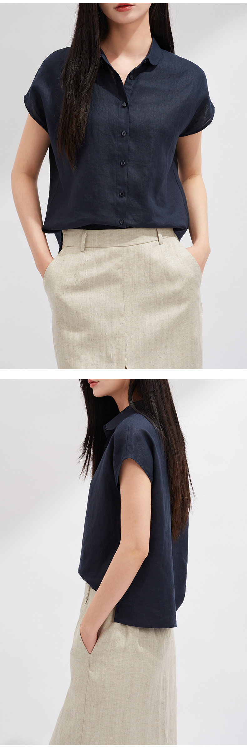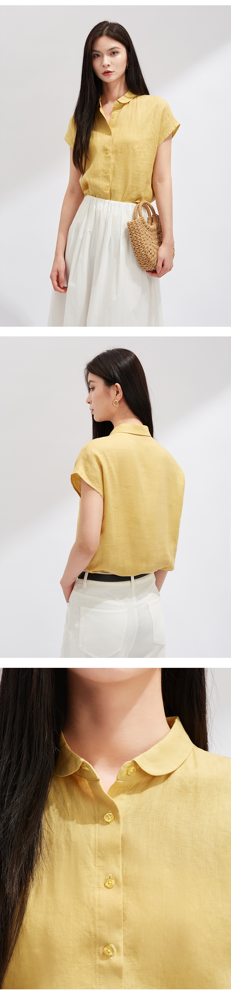 【夏日出街】阿菁娜漫享夏日重磅亚麻短袖小衫F30X202019