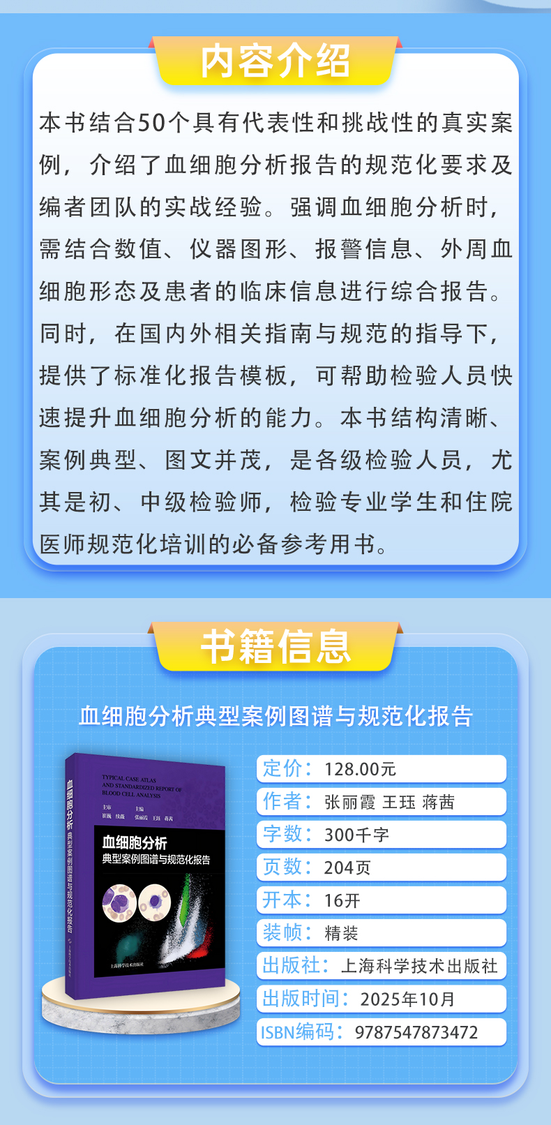 血细胞分析典型案例图谱与规范化报告 张丽霞 王珏 蒋茜 主编 适用各级临床检验人员及检验专业学生和住院医师 上海科学技术出版社