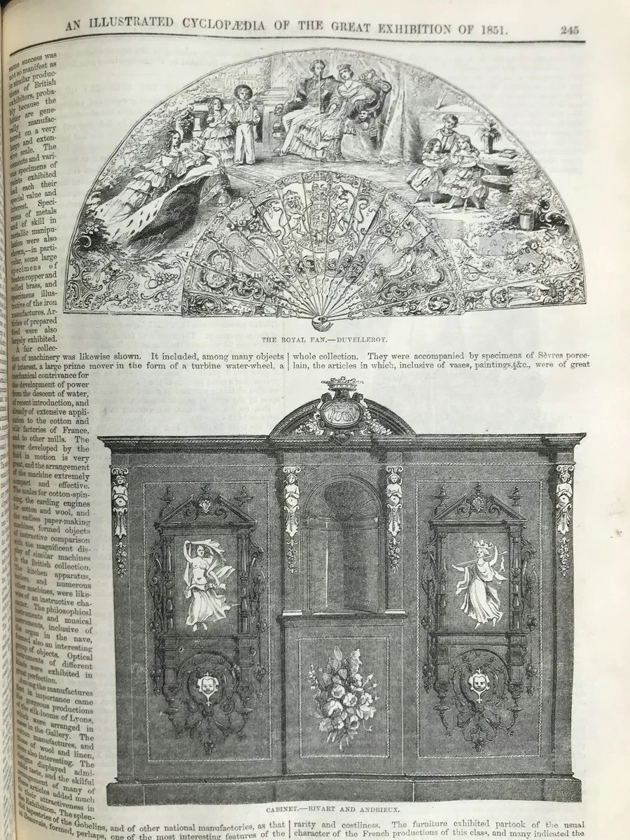 由伦敦W.M. Clark出版社于1852年出版,是一部集中记录维多利亚时代辉煌盛事——1851年伦敦万国博览会的重要图文著作。这本厚重的“百科全书式”作品,以详实文字与精美插图,系统呈现了水晶宫这一划时代建筑奇迹中的展品与布展盛况,涵盖来自世界各地的工业制造、机械创新、装饰艺术、手工艺、纺织品与原材料等诸多领域。本书不仅是博览会本身的纪实图录,更体现了19世纪中叶英国对全球化、工业进步与文化交流的热烈推崇。通过细致入微的图文编排,读者可沉浸于那个时代人类智慧与创造力的集体庆典之中,从英国产业雄风到东方艺术珍品,从蒸汽机械到雕金工艺,皆历历在目,仿佛重现一场穿越国界与时代的视觉与思想盛宴。