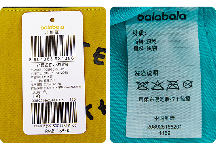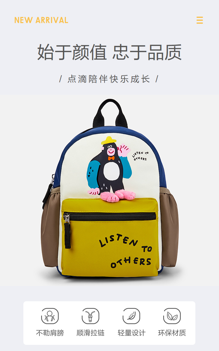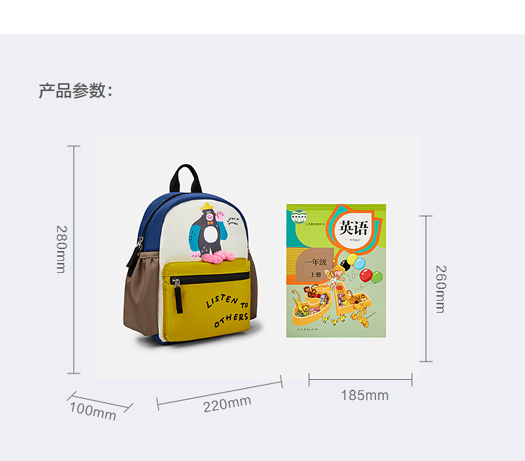 巴拉巴拉儿童休闲包男童女童双肩包舒适撞色卡通可爱背包时尚外出