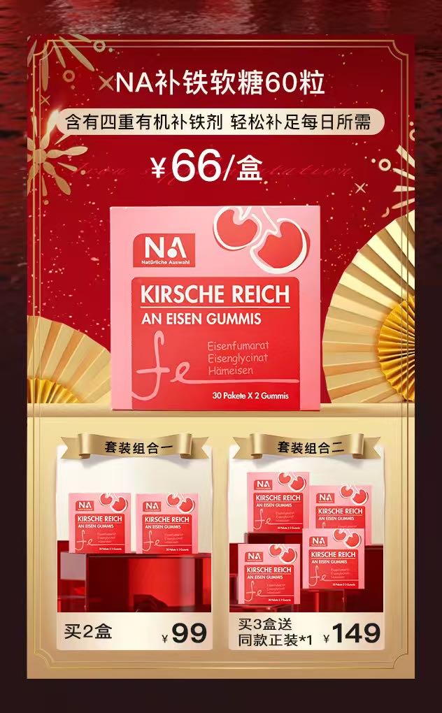 买三送一!德国NA自然之选 车厘子富铁软糖 四重铁剂+胶原蛋白肽 吃出好气色给美丽加分 全家都爱吃