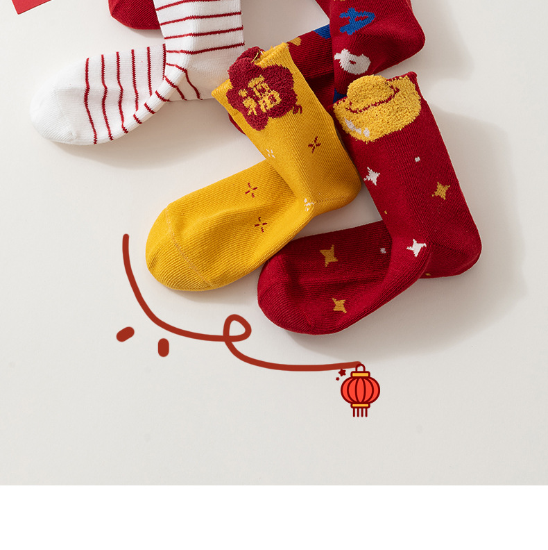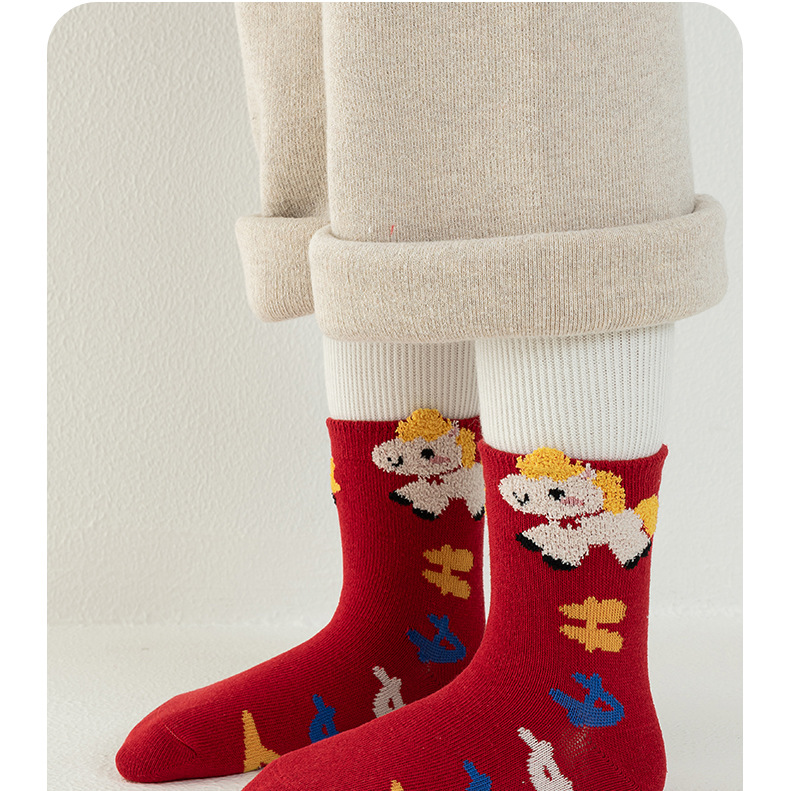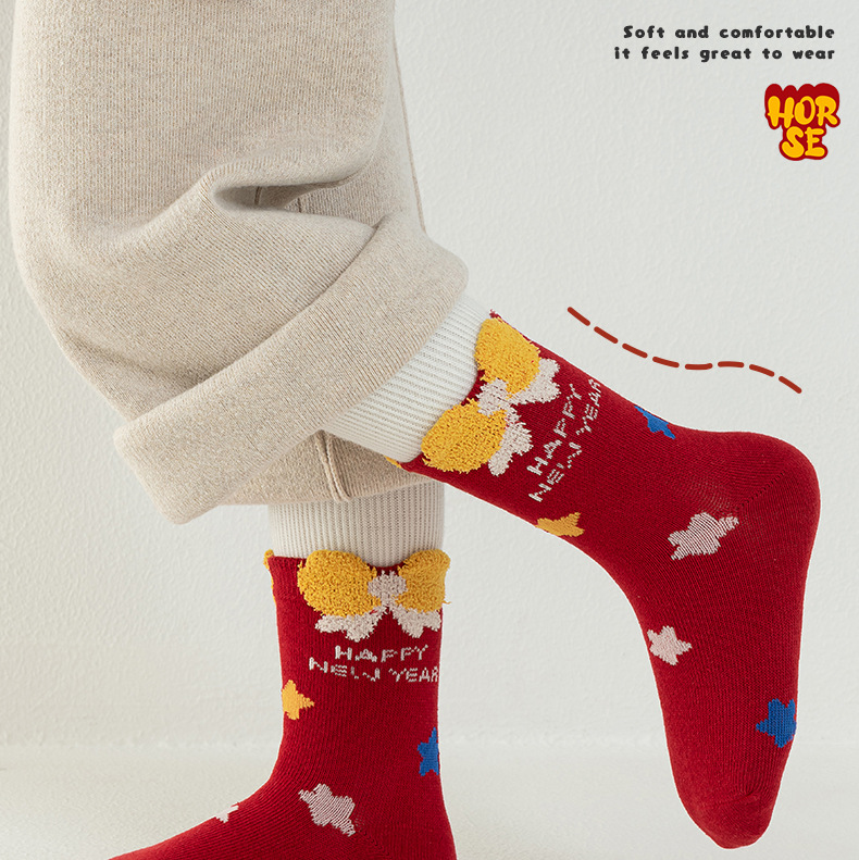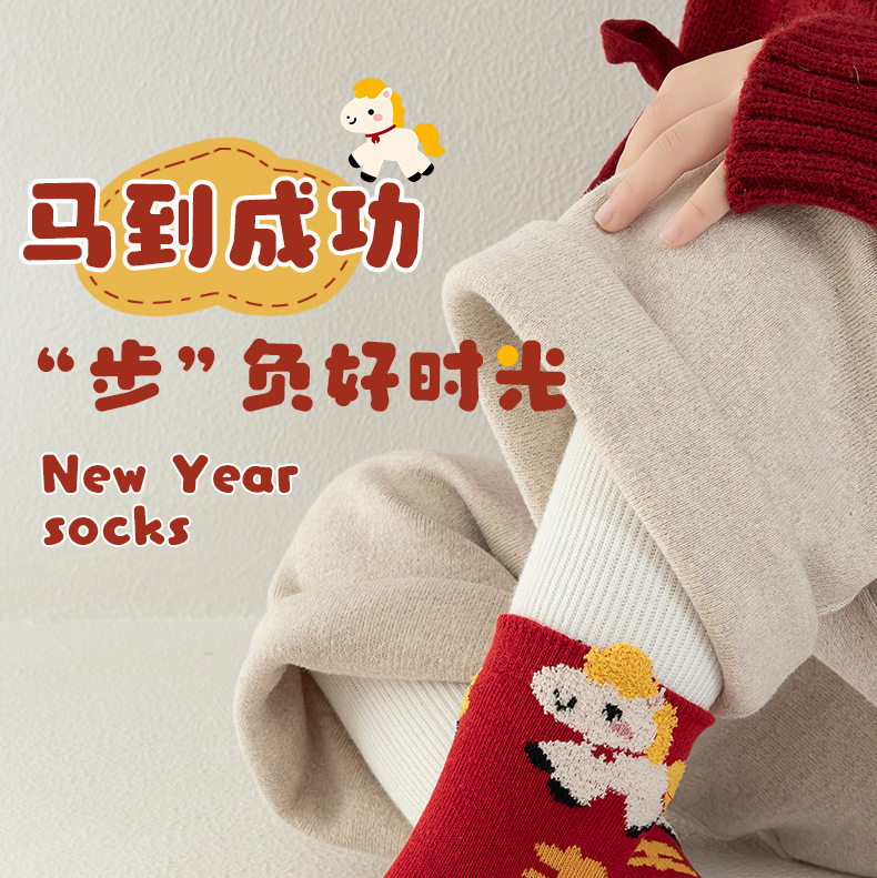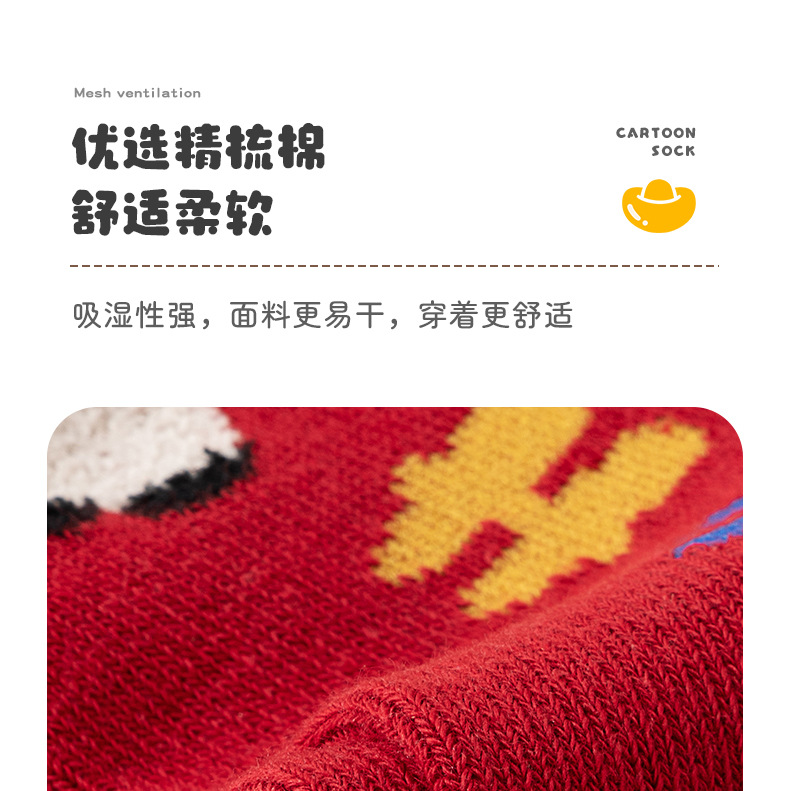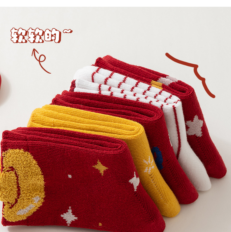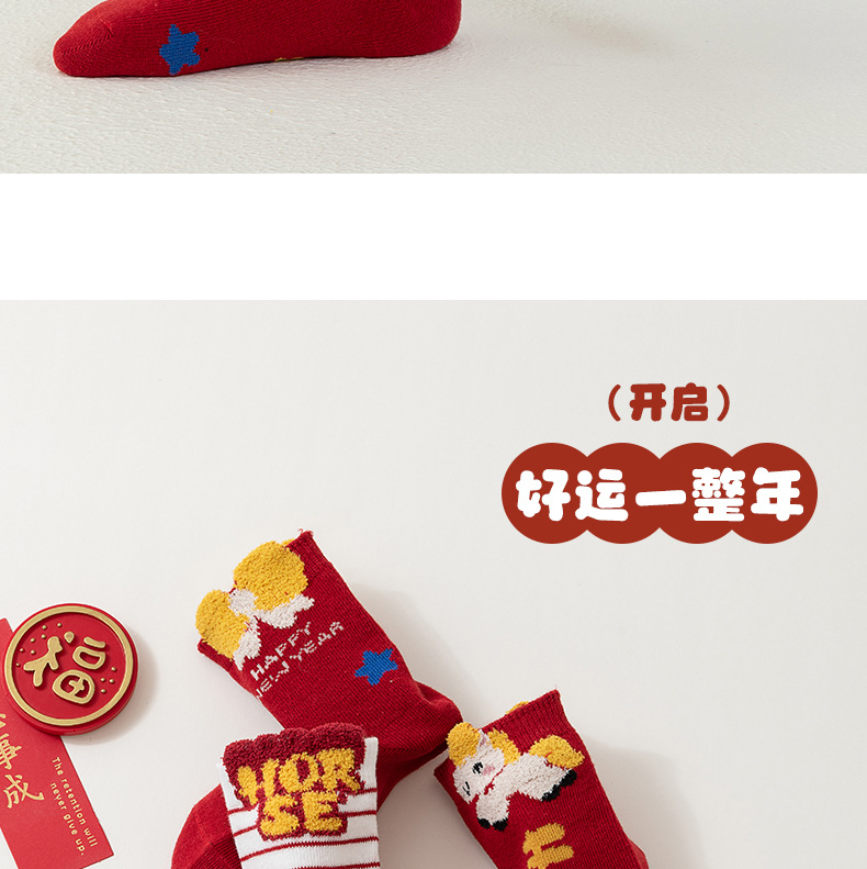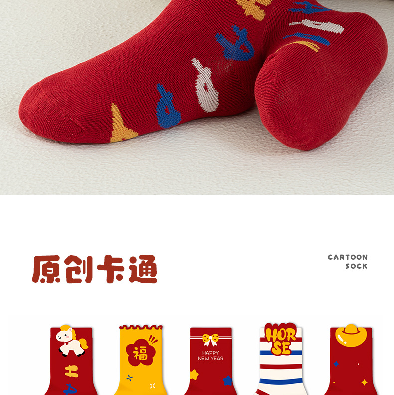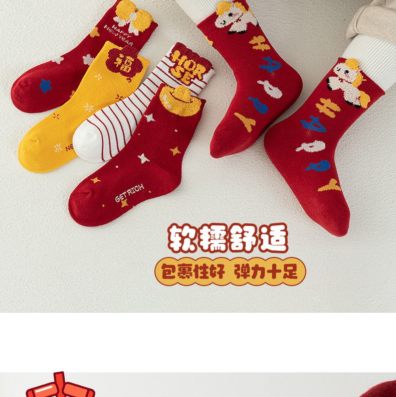 【合作款】儿童马年中筒袜 羽毛纱立体可爱卡通 五双装 商品图0