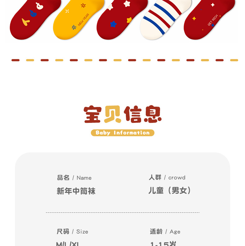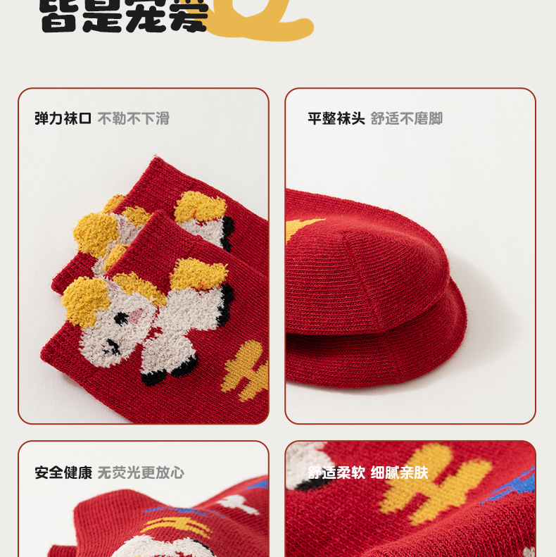 【合作款】儿童马年中筒袜 羽毛纱立体可爱卡通 五双装 商品图8