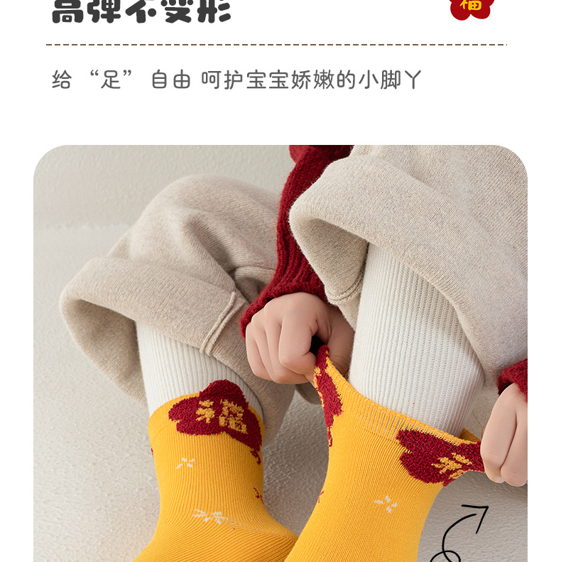 【合作款】儿童马年中筒袜 羽毛纱立体可爱卡通 五双装 商品图7