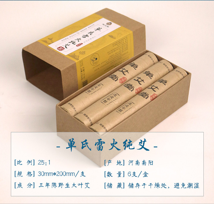 单艾堂 单氏雷火纯艾 3厘米粗艾条6支装 25:1