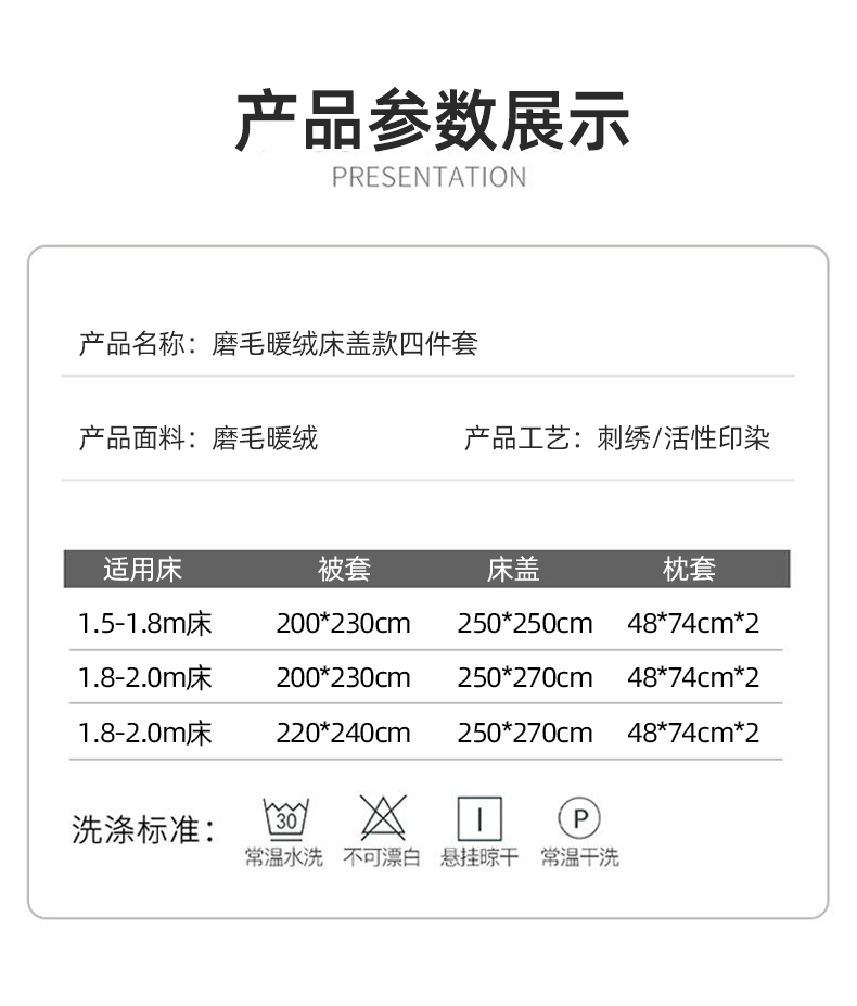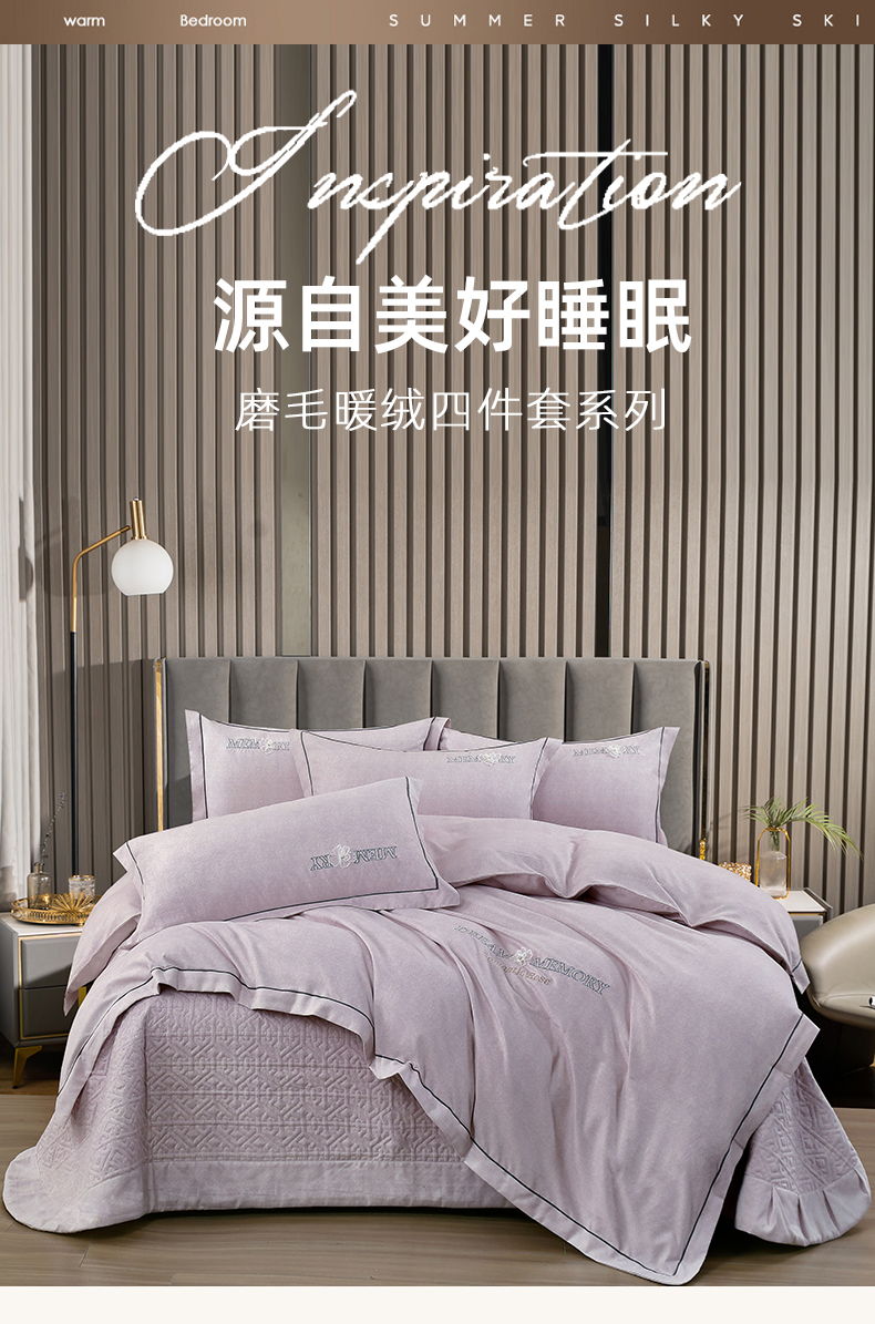 【三层加厚夹棉床盖设计】亲肤磨毛暖绒床盖款夹棉四件套 超柔加厚保暖套件
