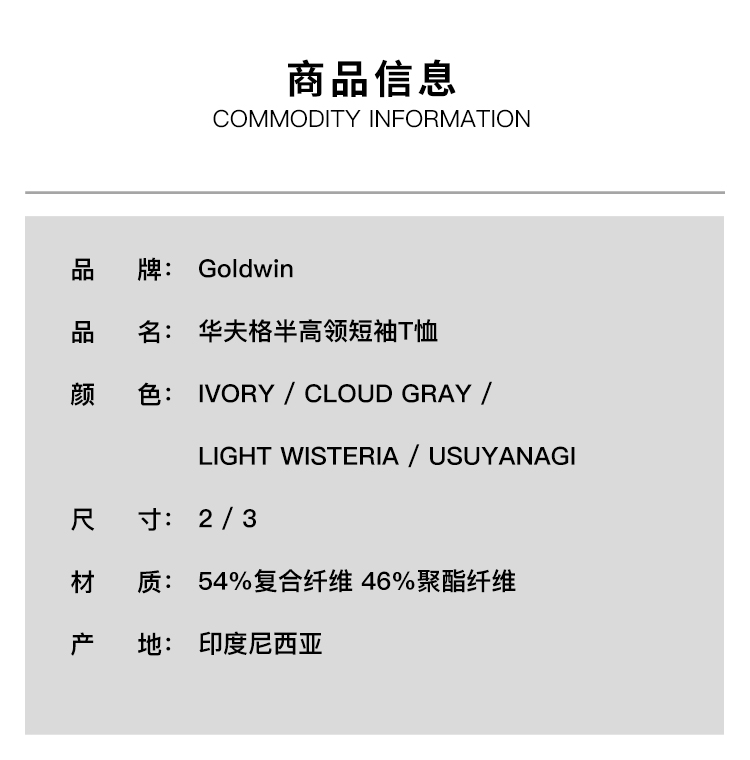 Goldwin WF T-shirt 女装防紫外线轻量华夫格半高领短袖T恤