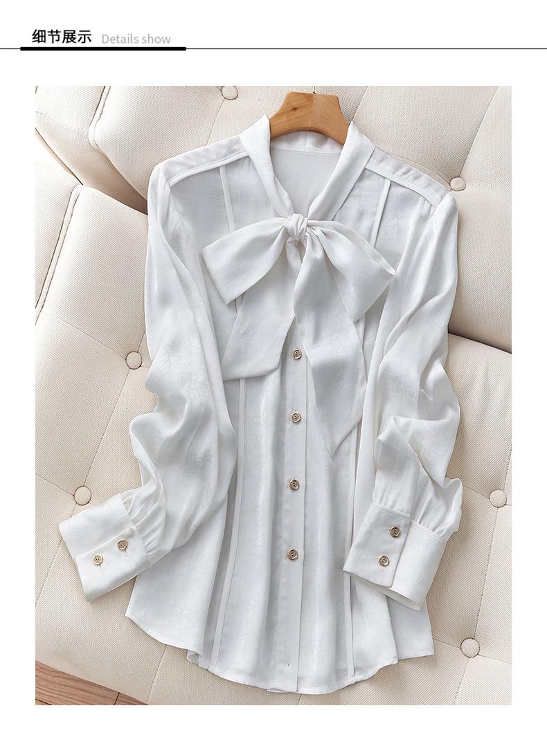 2023秋装新款衬衫女长袖宽松雪纺衫白色女士衬衣A2658