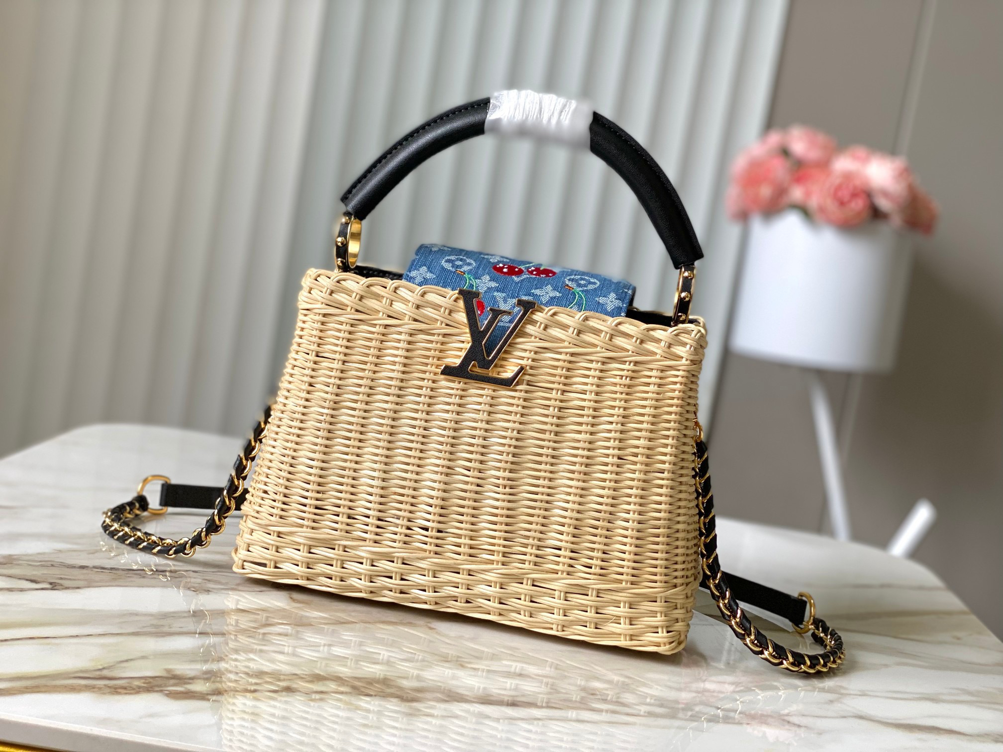 秋冬特惠💰1750 渠道级LV 新品 te级LV 动态芯片 LV X TM CAPUCINES 手袋 M14295/M48865黑色樱桃竹篮 本款Capucines手袋