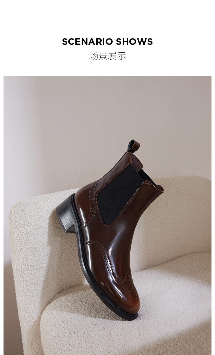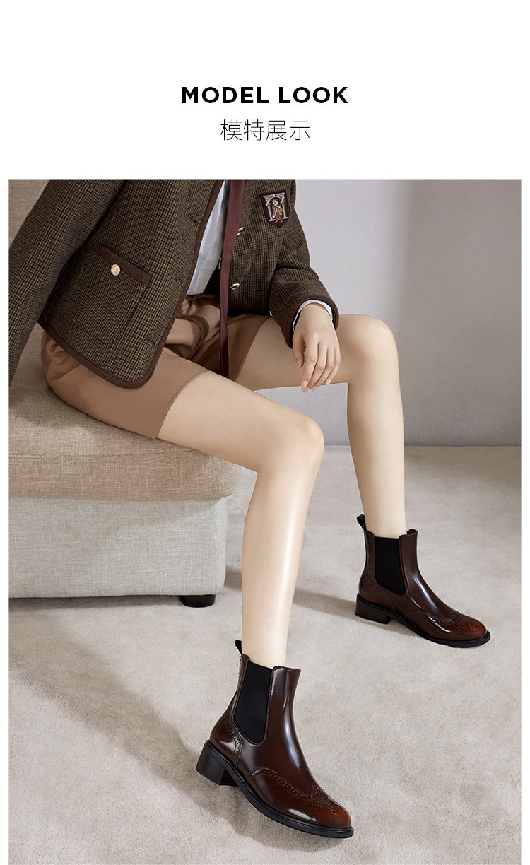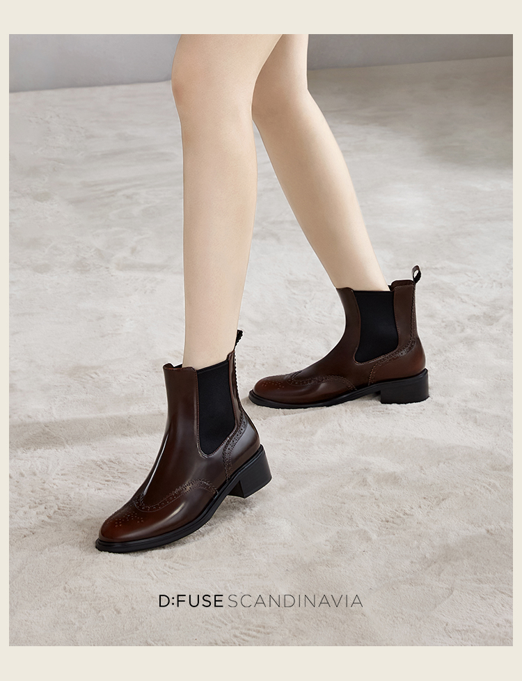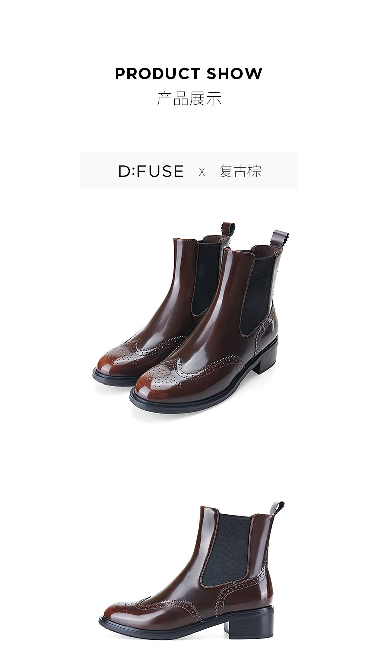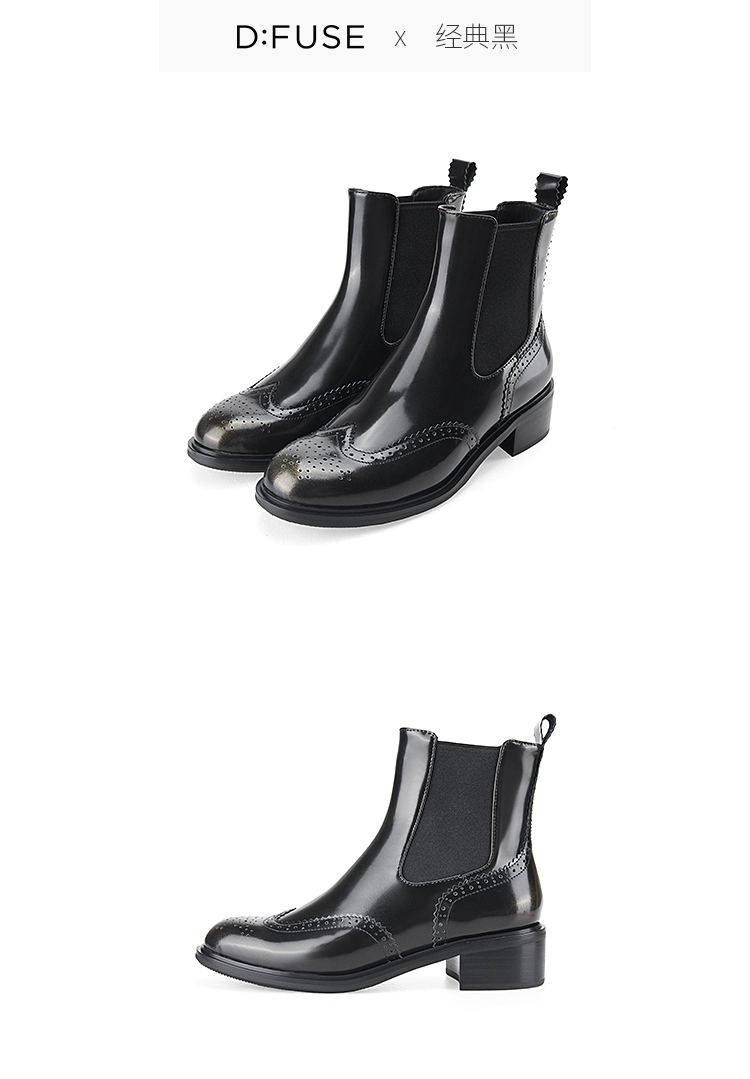 Dfuse迪芙斯冬季新品季新款圆头牛皮经典英伦切尔西短靴DF34116008