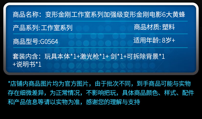 孩之宝 Hasbro 变形金刚工作室系列加强级《大黄蜂》电影版大黄蜂HASCG0564CA00