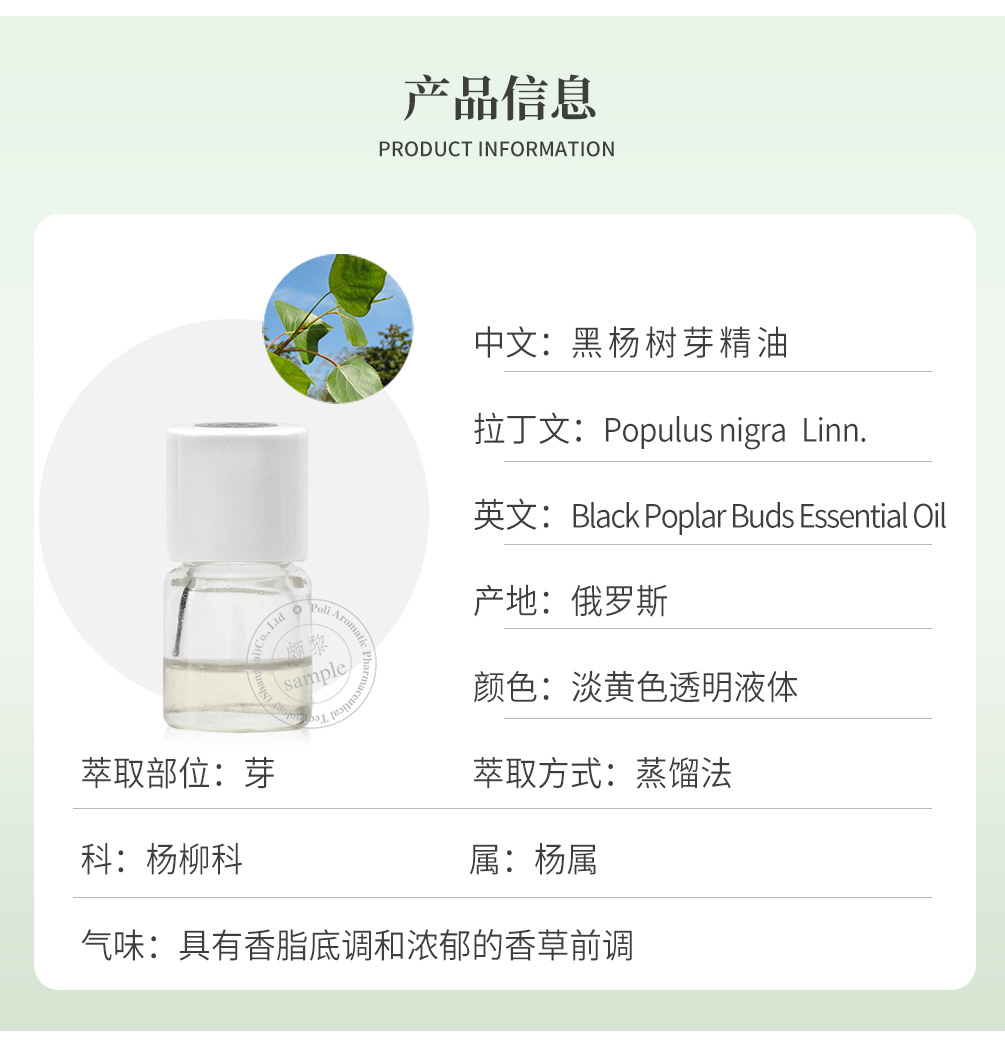 俄罗斯进口黑杨树芽精油 天然精油原料香薰 颇黎进口单方精油原液
