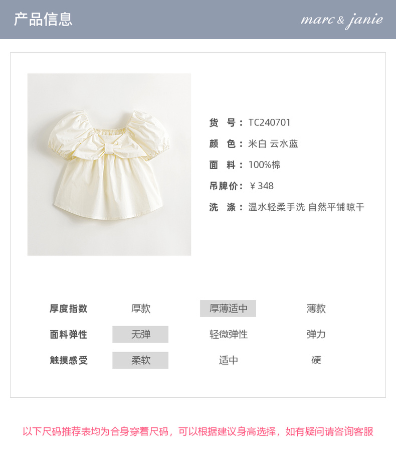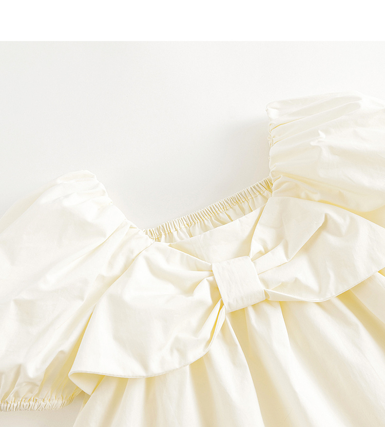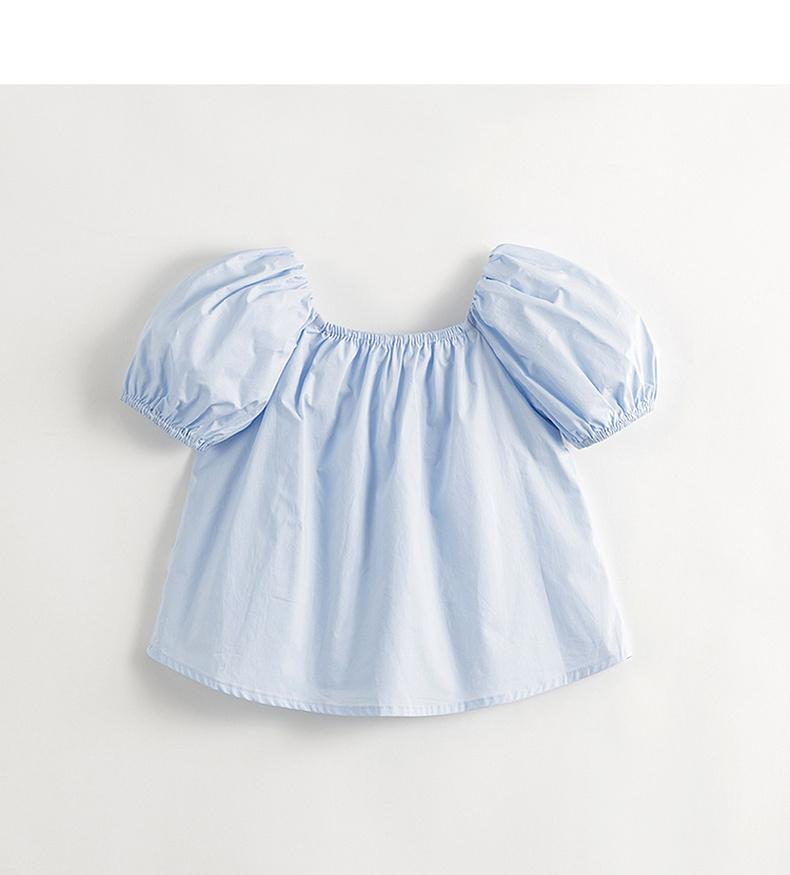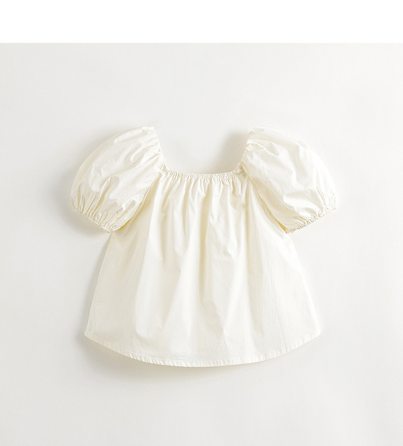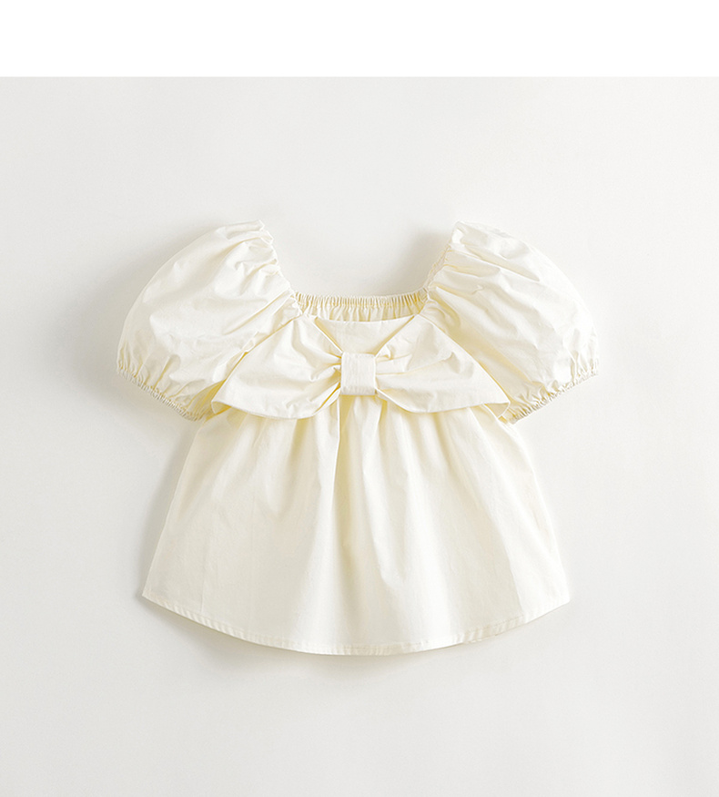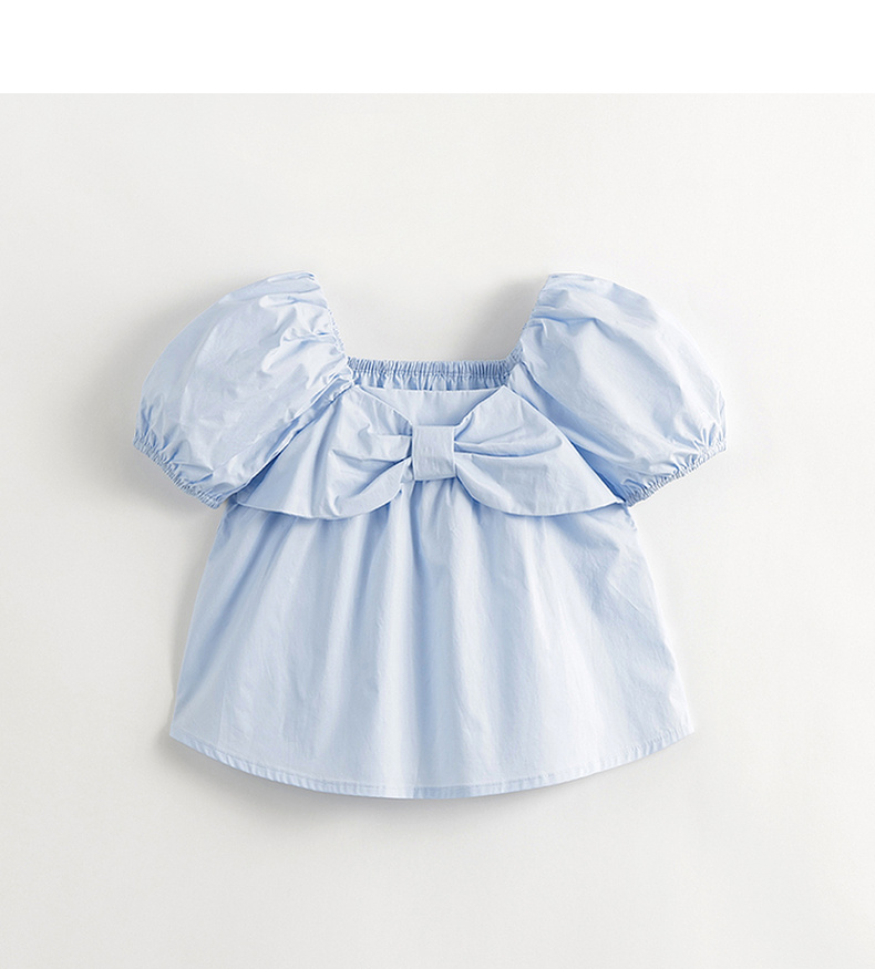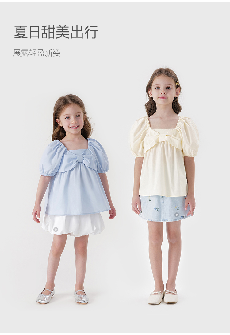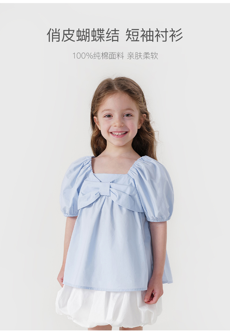 马克珍妮女童泡泡袖大蝴蝶结衬衫儿童纯棉衬衣上衣夏装新款240701