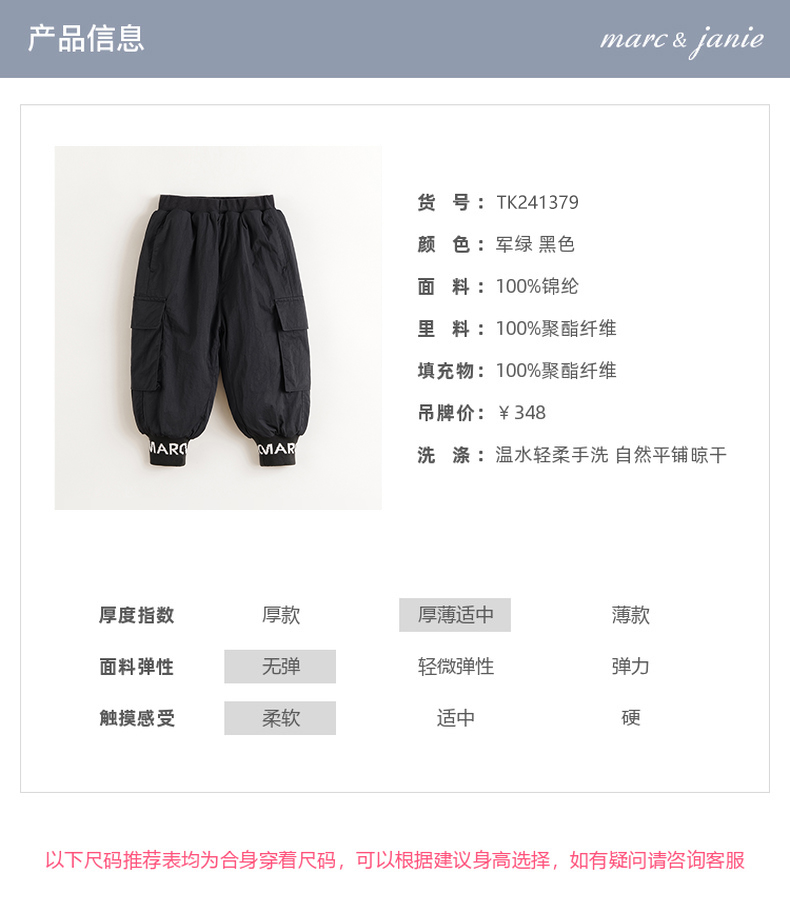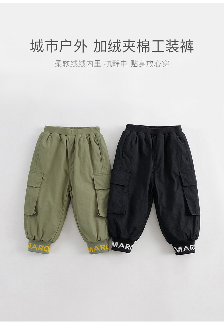 【城市户外】马克珍妮男童加绒夹棉工装束脚裤儿童冬装裤子241379