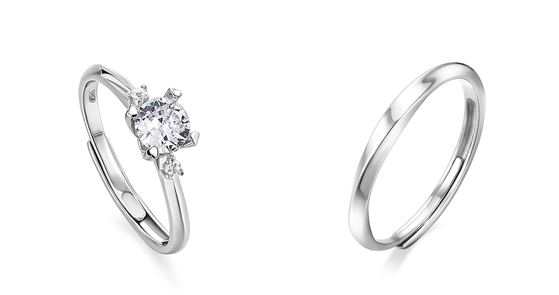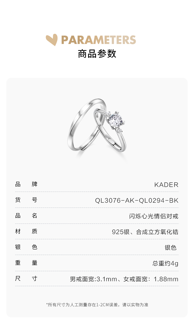 卡蒂罗/KADER 闪烁心光对戒 莫比乌斯大颗锆石爆闪可调节情侣对戒 恋爱频率钟爱久久求婚配饰 925银 送女朋友