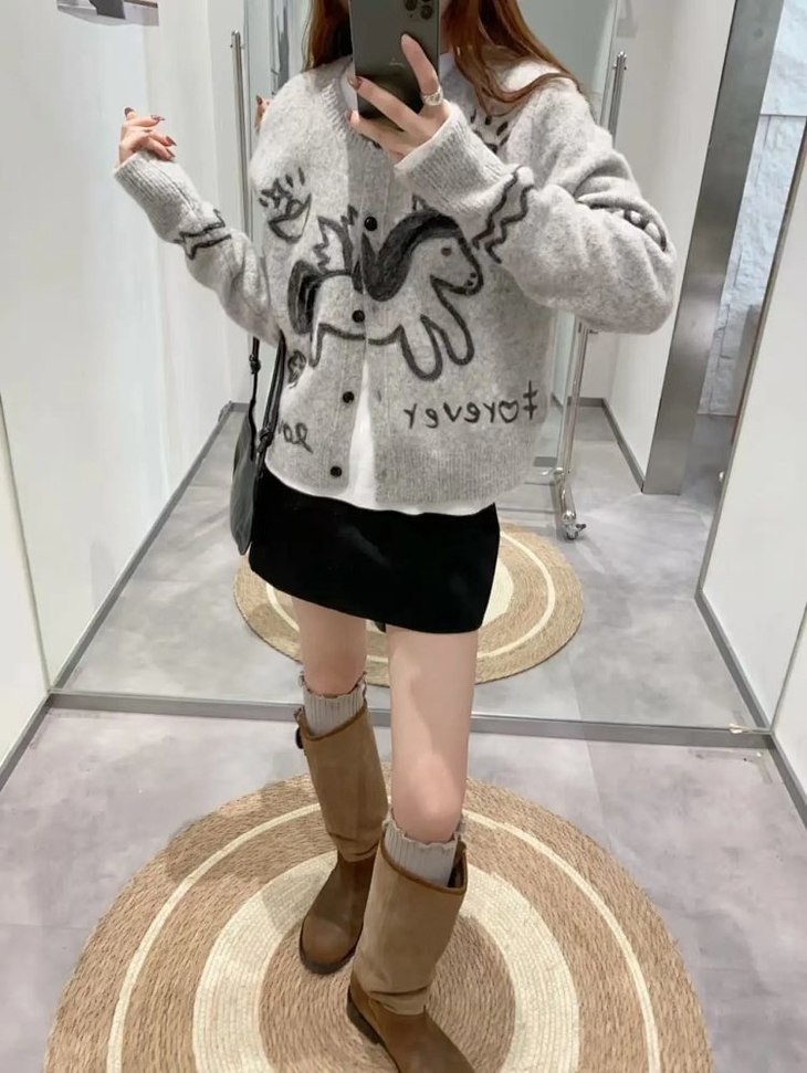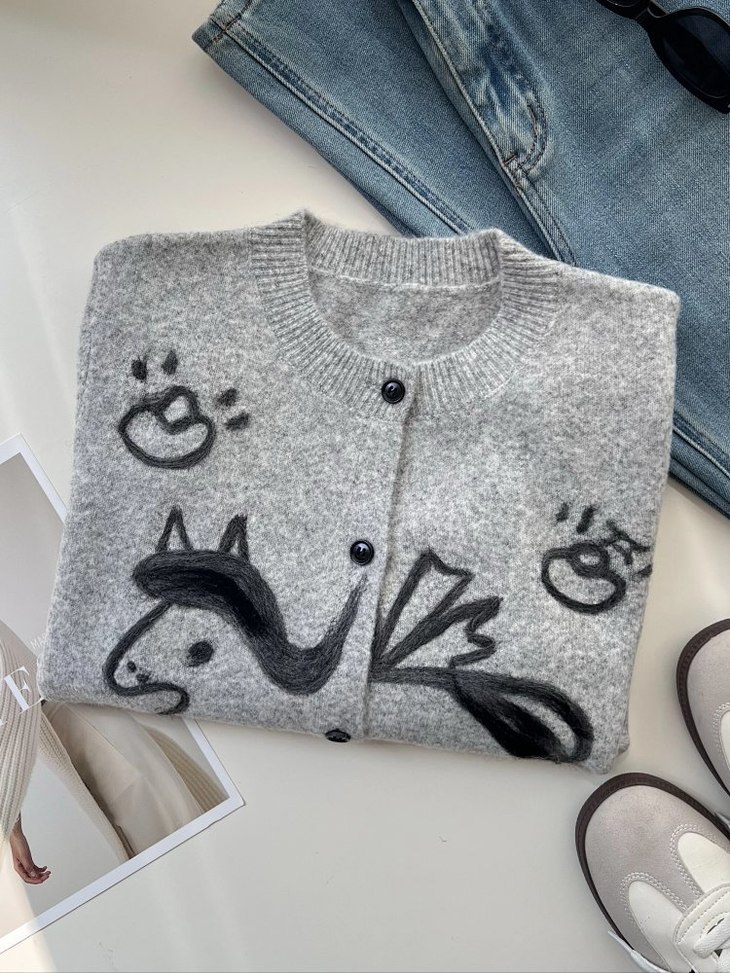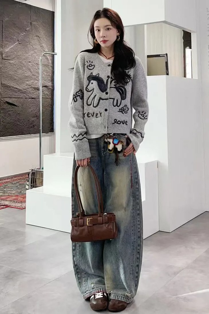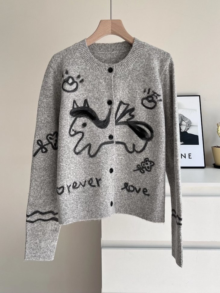 【马年限定款刺绣针织开衫】童趣小马图案+宽松的版型设计,轻松打造随性慵懒的时髦感,无标发货WD