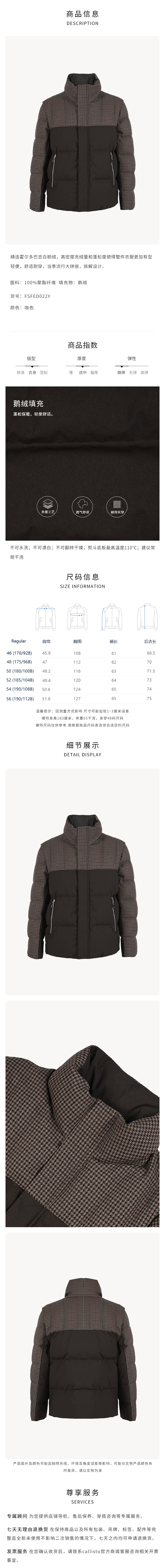callisto咖色精选霍多巴吉白鹅绒羽绒服 FSFED022Y