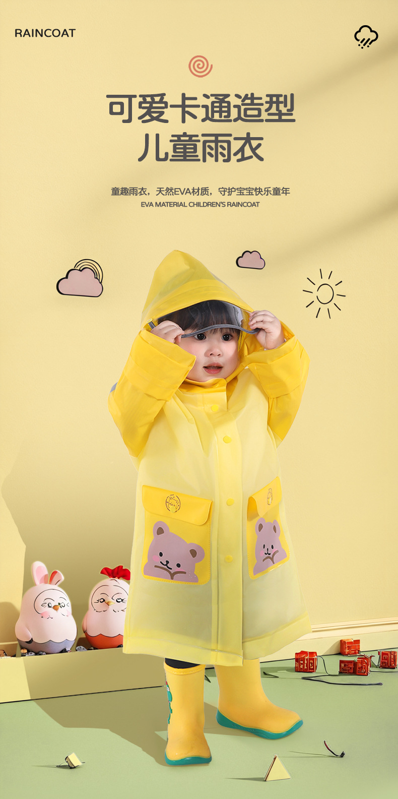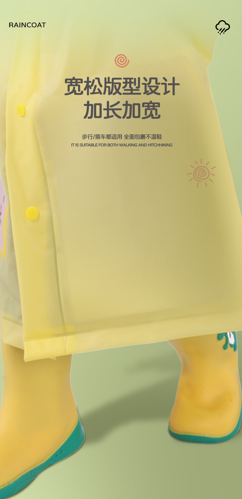 【上学好帮手❗️萌趣卡通雨衣】雨天小卫士「多层防渗水保障」步行/搭车都适用,全面包裹不湿鞋,面料很安全,妈妈放心选,男童女童女孩小学生幼儿园上学,全身一体宝宝卡通雨披L
