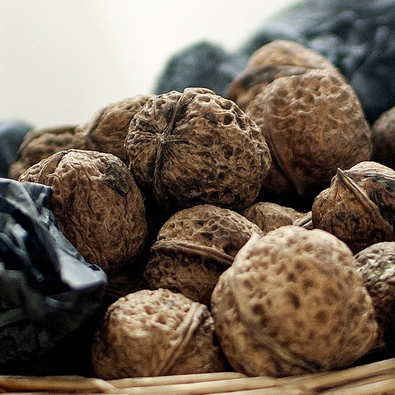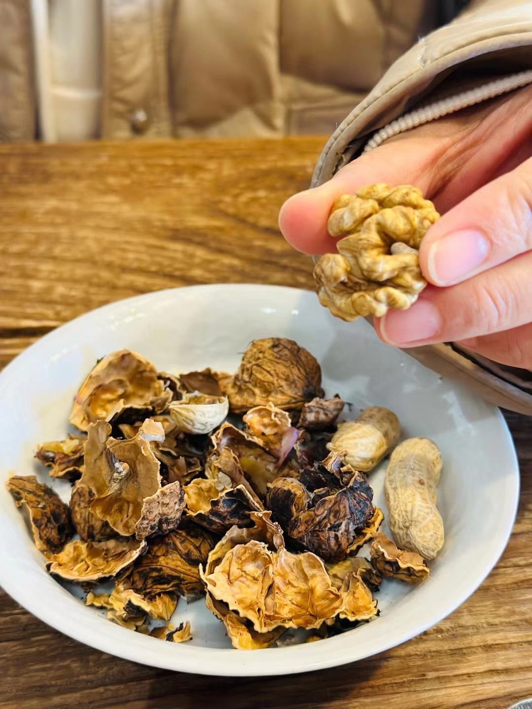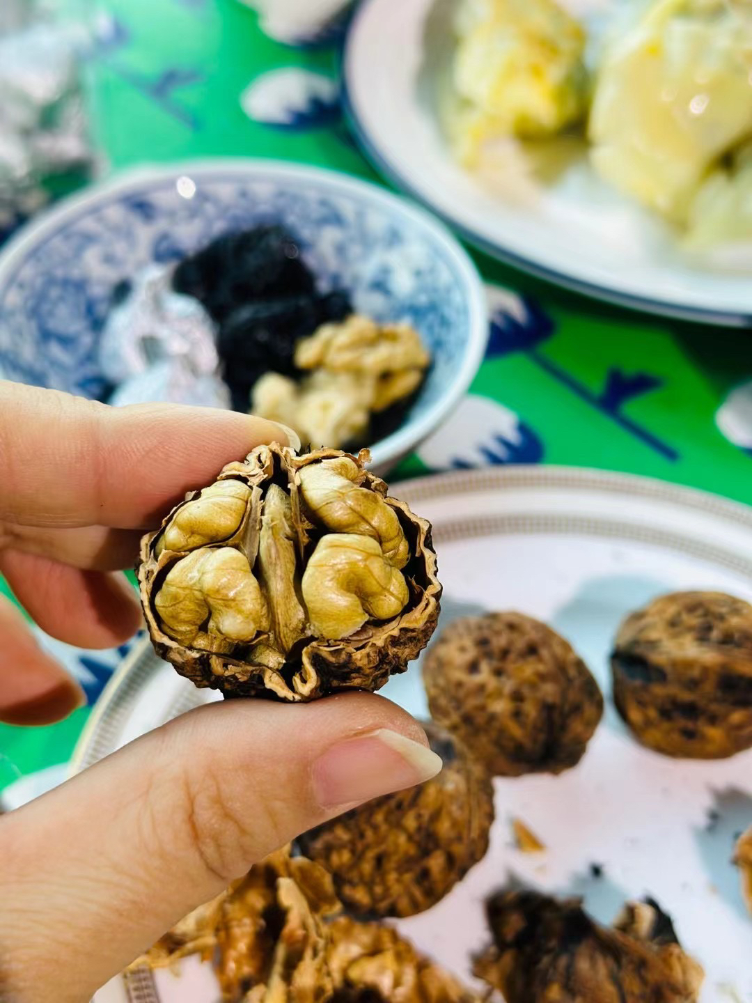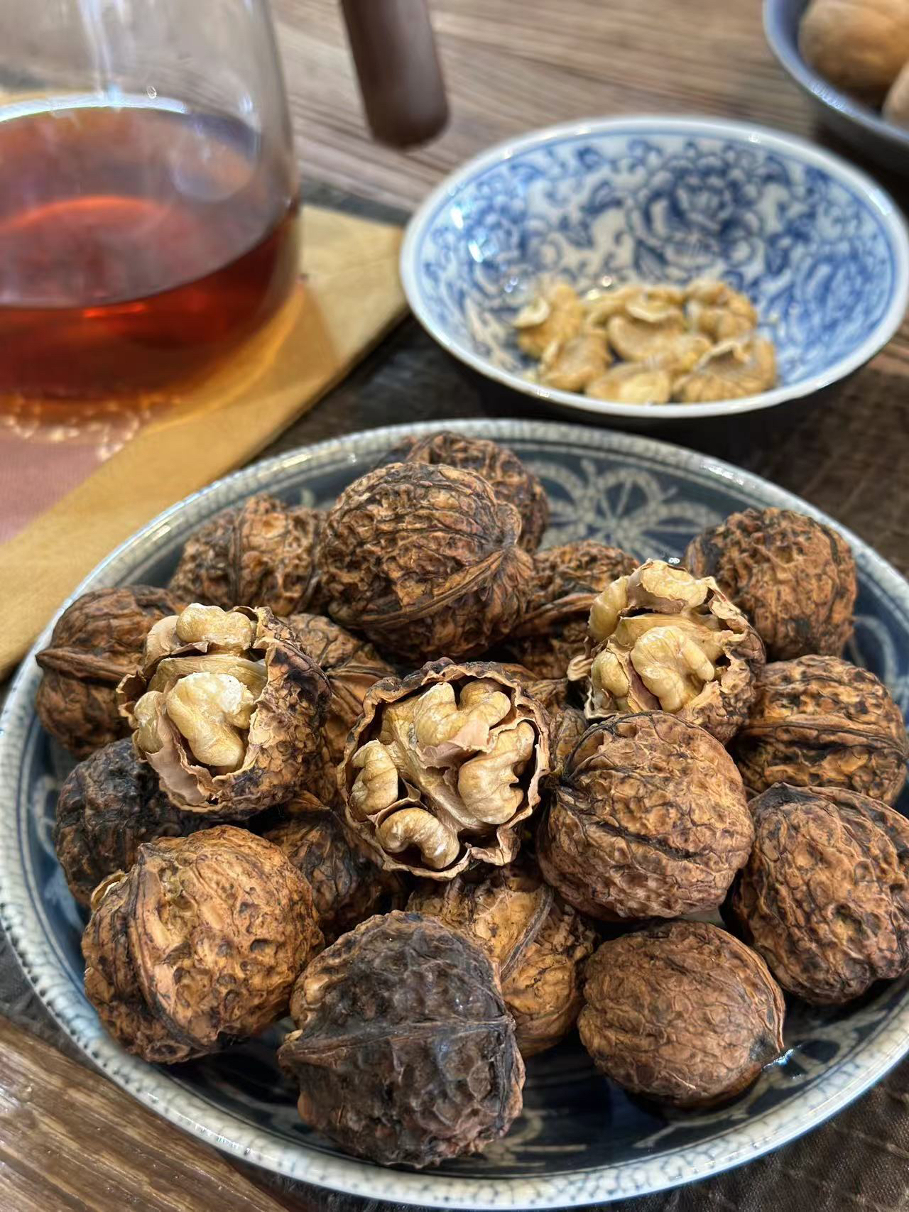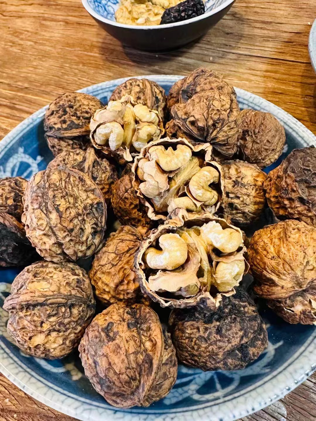 产量不大,一年就秋后采摘一季。那边至今还保留着柴火窑烤的传统手艺,带着核桃原始的味道。