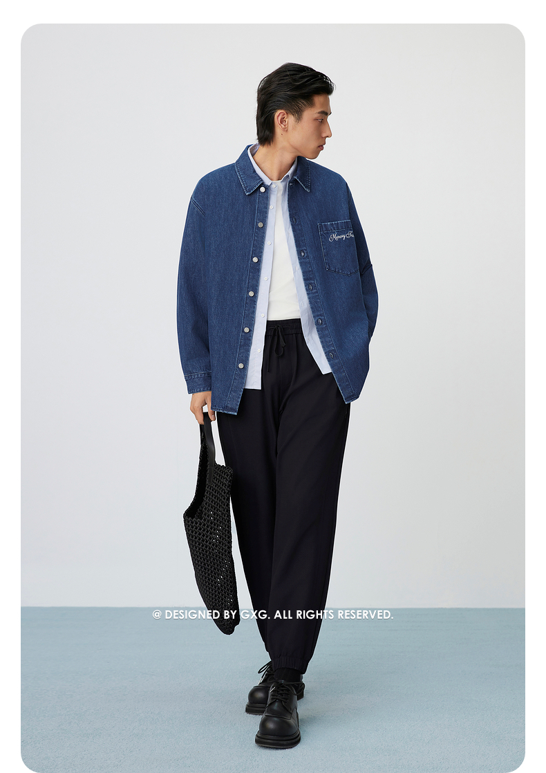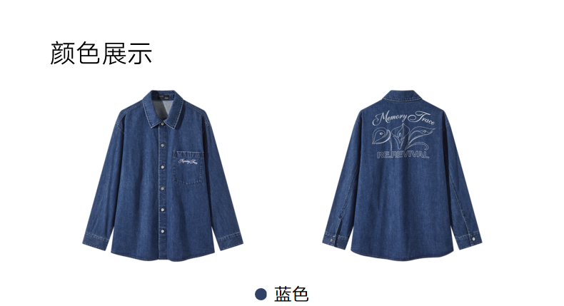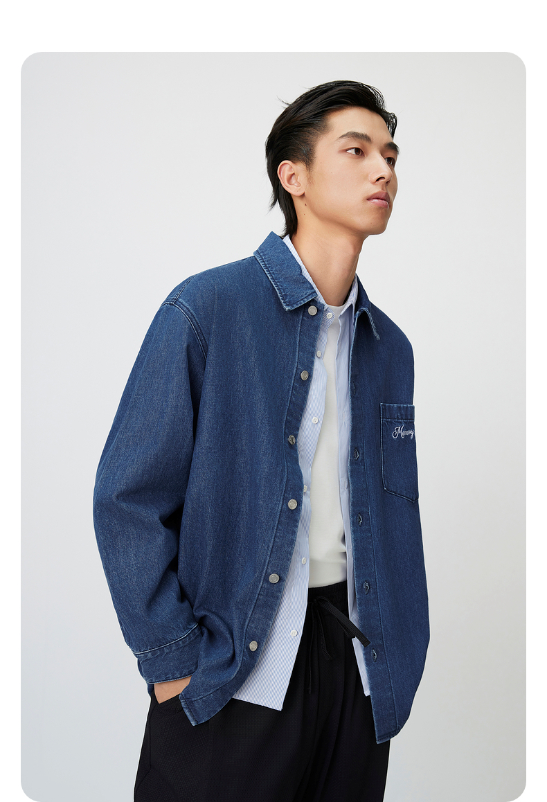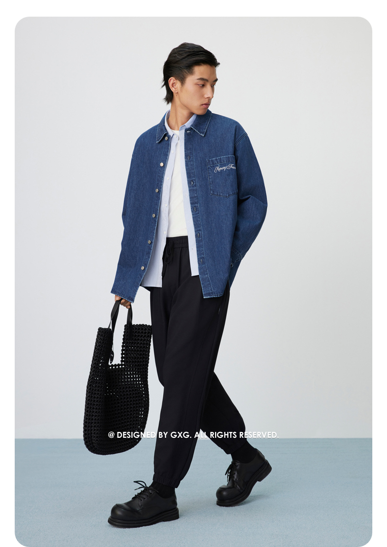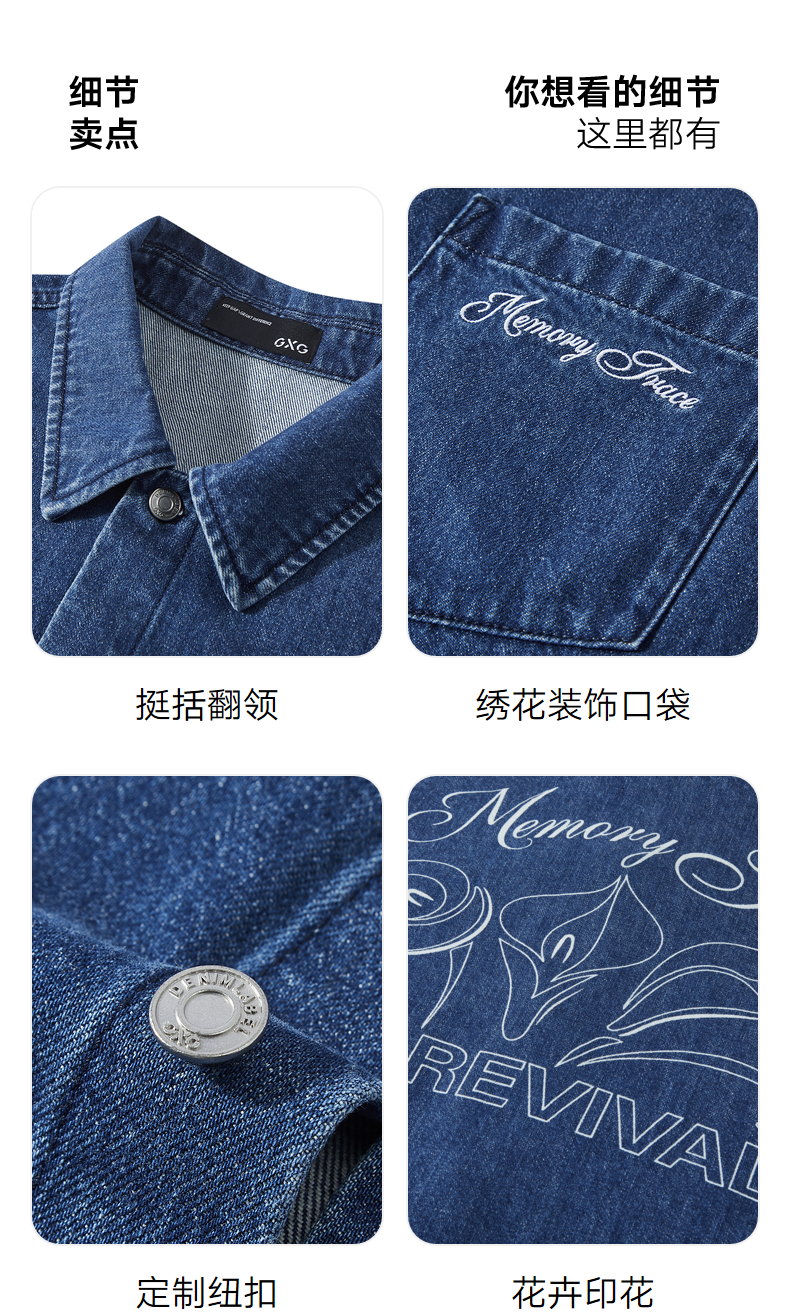 GXG男装 蓝色后背花卉潮流时尚宽松外穿式牛仔衬衫外套 25春热卖