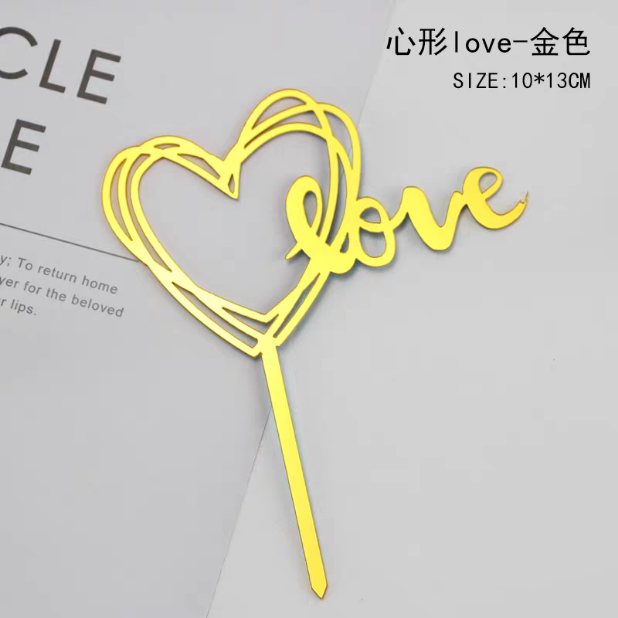 单支装 金色 亚克力爱心love插件 情人节七夕520表白装饰插件