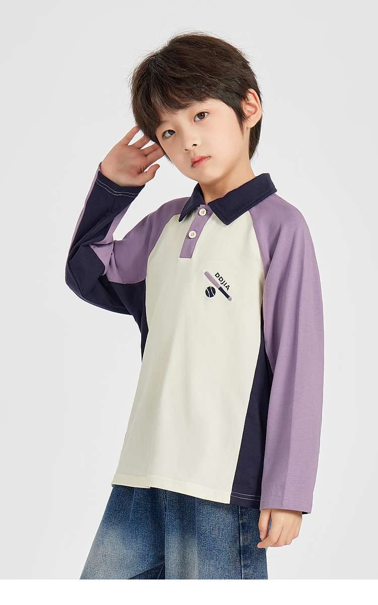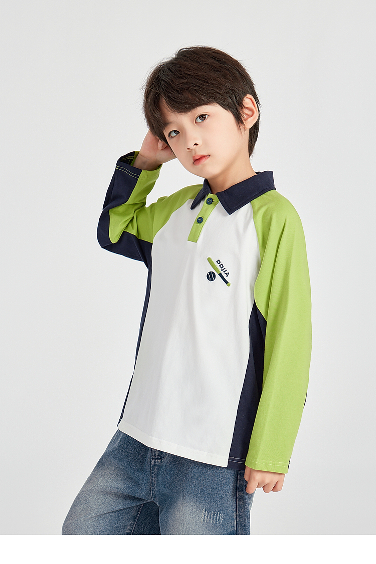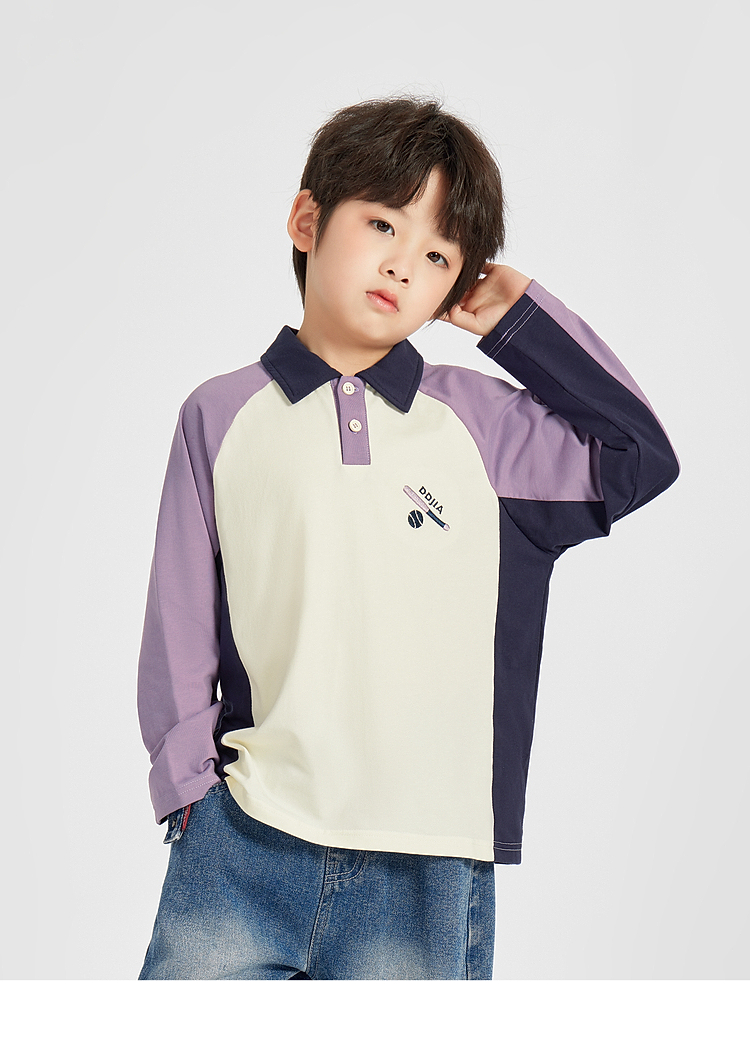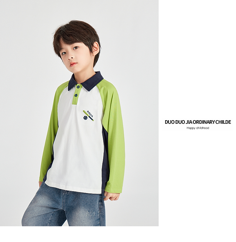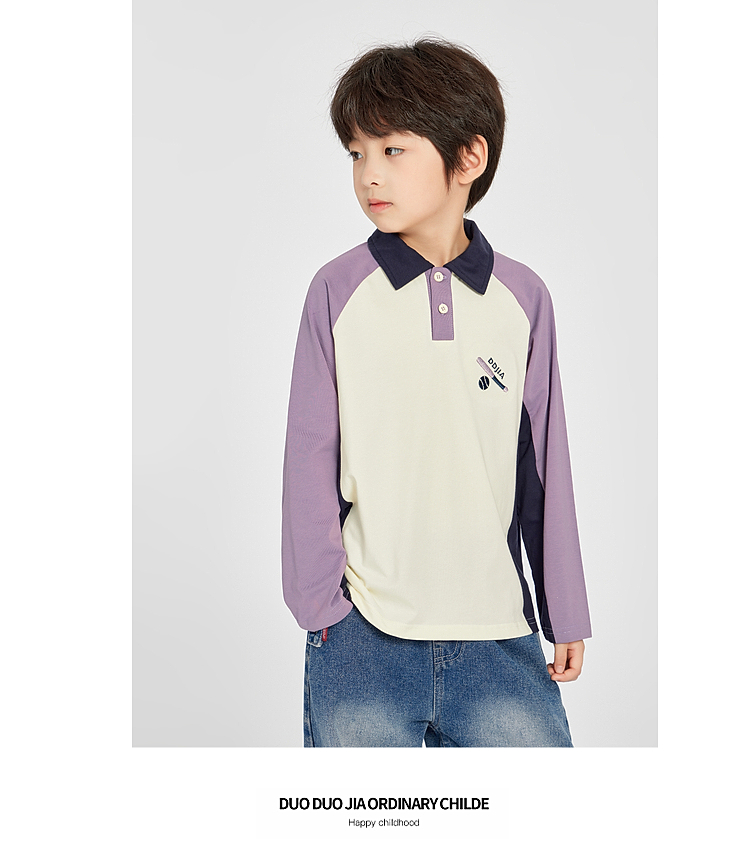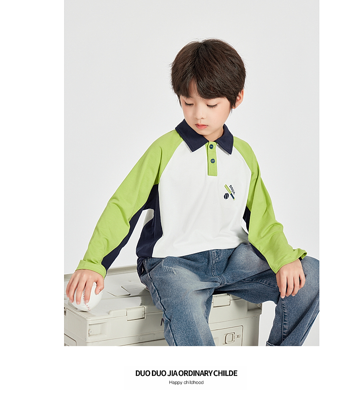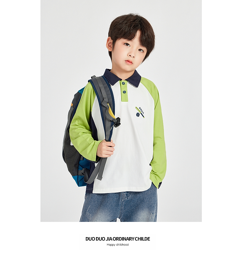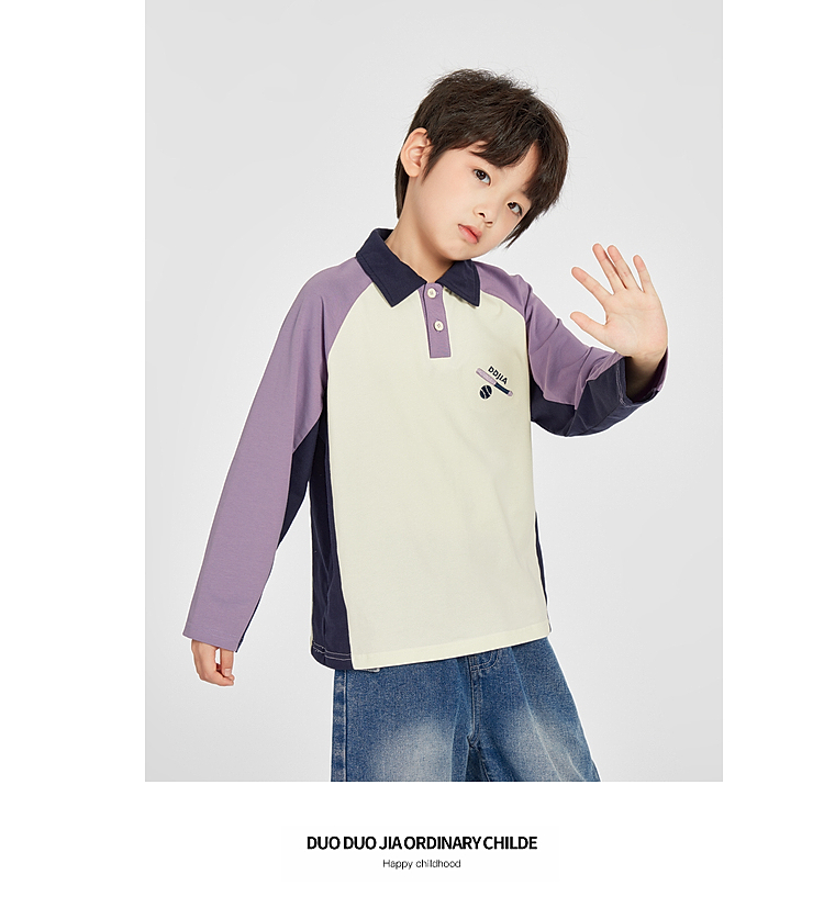 【团购价59.9】多多家男童polo衫2025新款春秋款儿童中大童撞色绣花休闲长袖T恤10400
