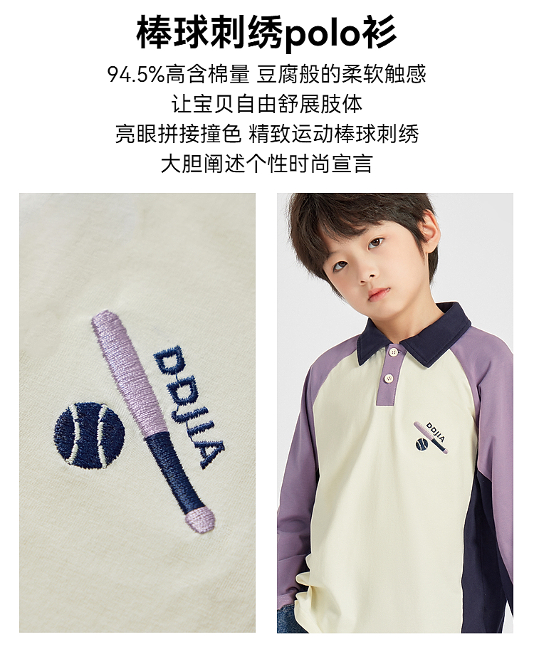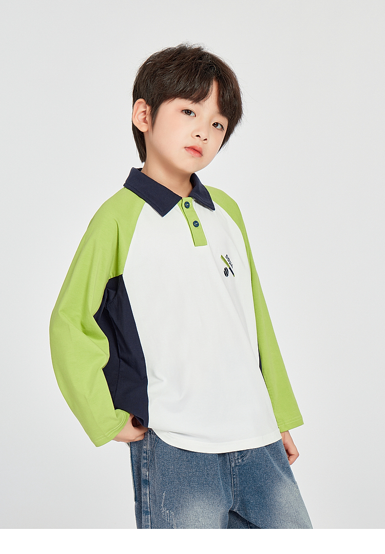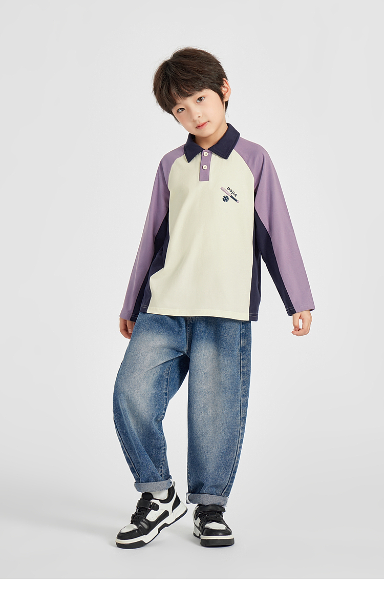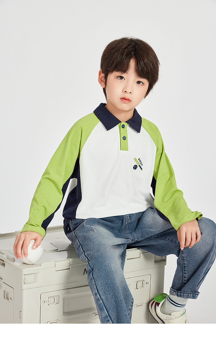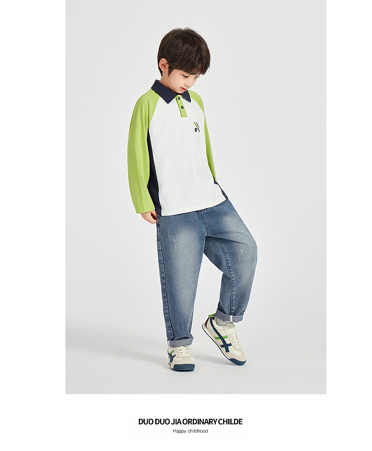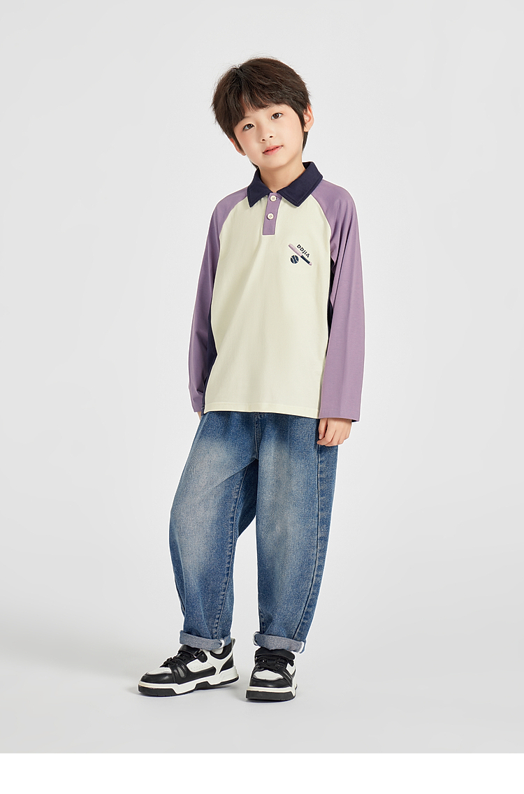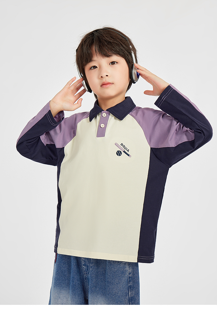 【团购价59.9】多多家男童polo衫2025新款春秋款儿童中大童撞色绣花休闲长袖T恤10400